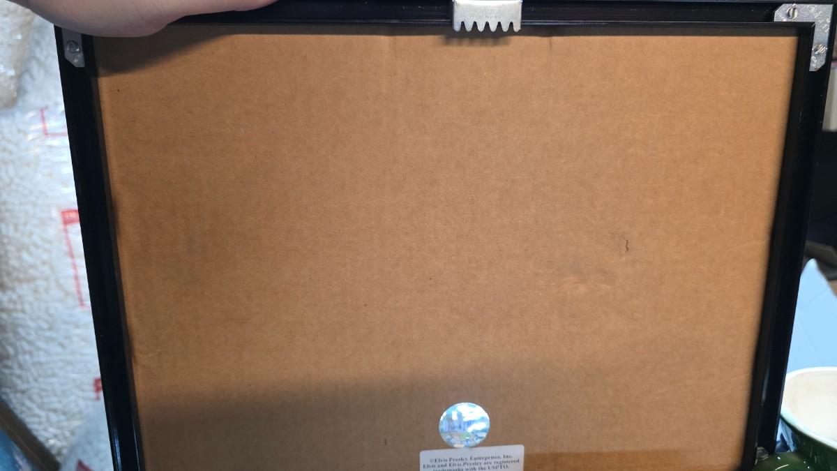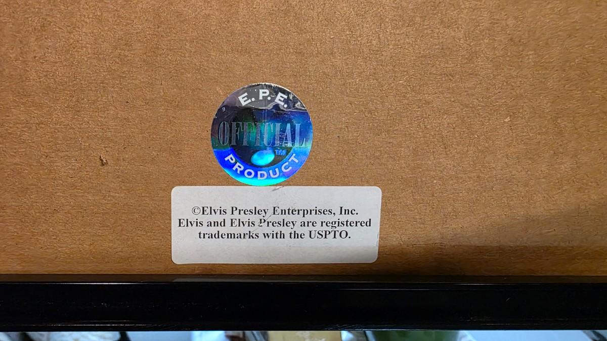 The frame shows minor surface wear consistent with age and handling, while the internal elements present attractively for wall display. A distinctive piece of Elvis history that naturally fits in music rooms, home lounges, studios, or curated memorabilia collections.