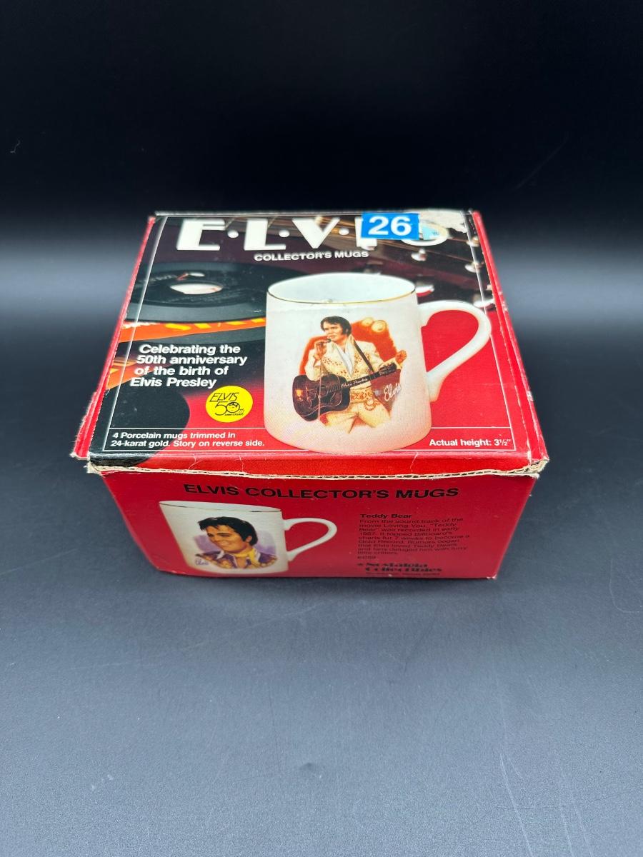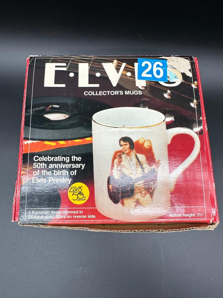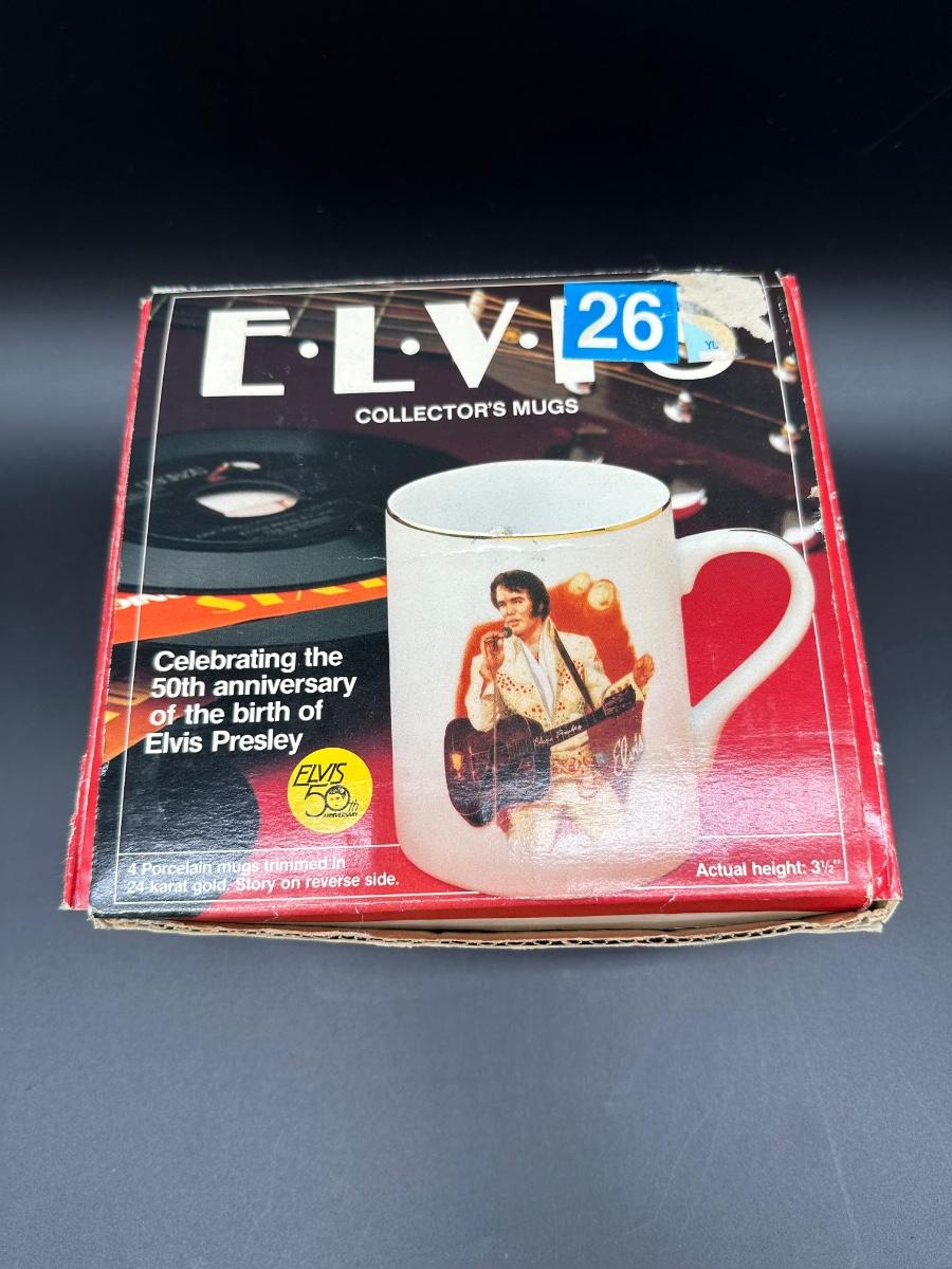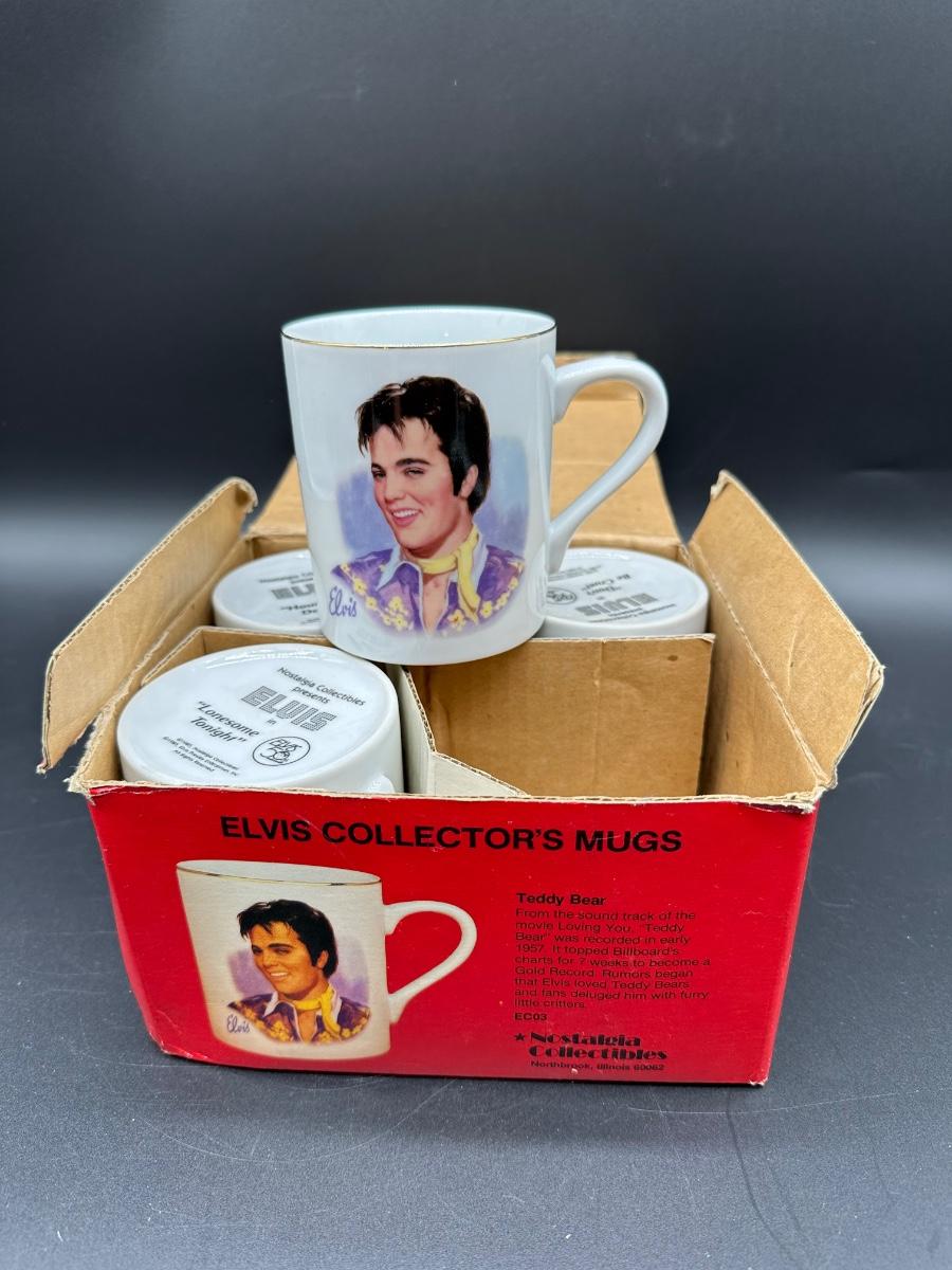 Vintage Elvis Presley Collector’s Mug Set celebrating the 50th Anniversary of the birth of Elvis Presley.