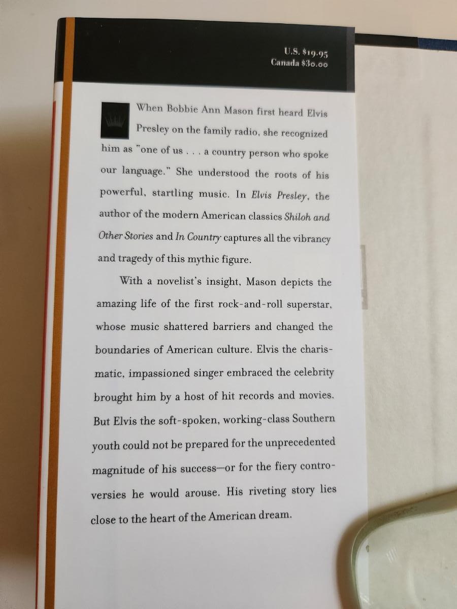 This auction lot is for a copy of the Elvis Presley by Bobbie Ann Mason Book. This book is as new, it was published in 2003 and is a 1st edition. The book is 178 pages and is hard bound with good dust jacket. Bobbie Ann Mason is an American novelist, short story writer, essayist, and literary critic from Kentucky. Her memoir was a finalist for the Pulitzer Prize
