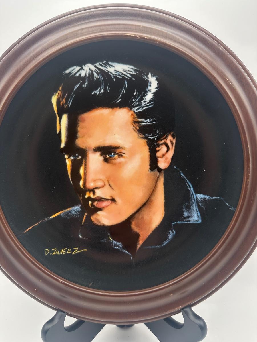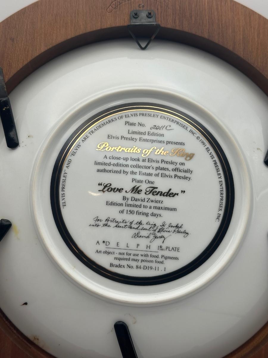 Limited edition Elvis Presley collector plate “Love Me Tender” by David Zwierz, from the “Portraits of the King” series. Minor wear on wooden frame, see photos.