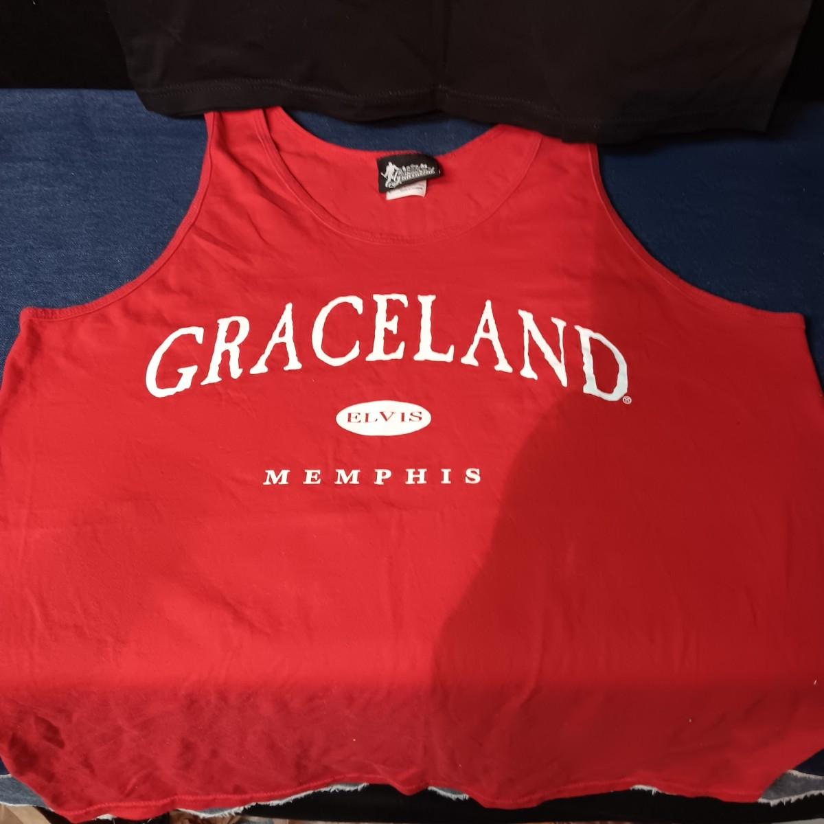 ELVIS PRESLEY HARD ROCK CAFE T-SHIRT & GRACELAND MUSCLE SHIRT BOTH LARGE