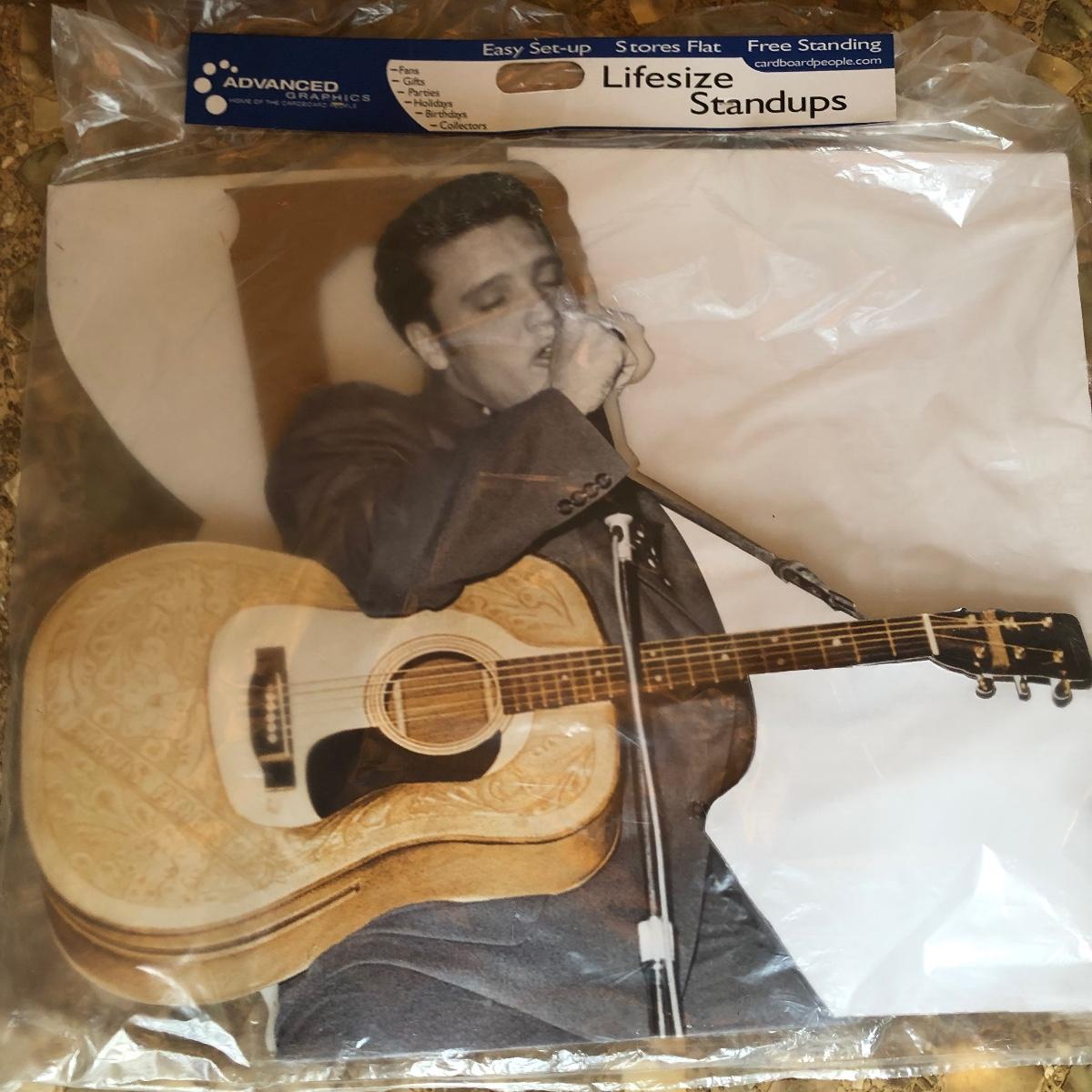 Lot includes a new still in packing lifesize cardboard standup of Elvis Presley. Cover picture is a stock photo to keep the packaging new. Elvis measures 39” x 65”.
