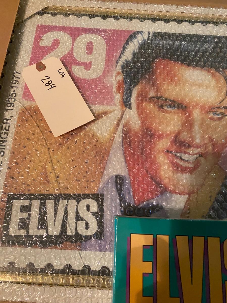 Elvis Stamp Picture, and Puzzle Lot, Glass is Broken on Picture