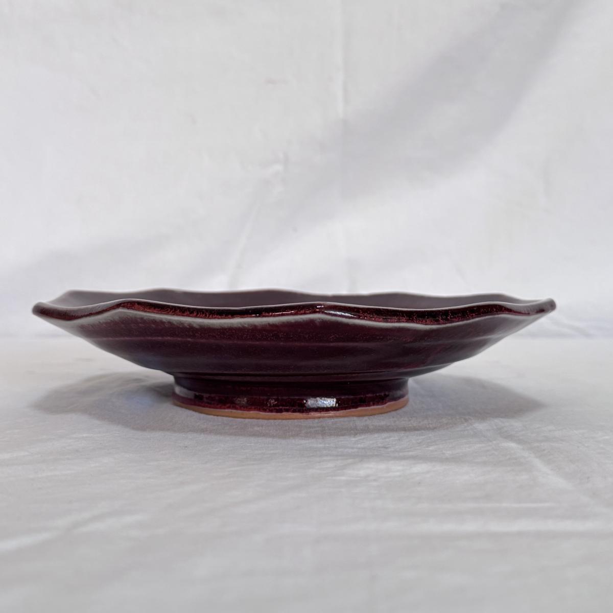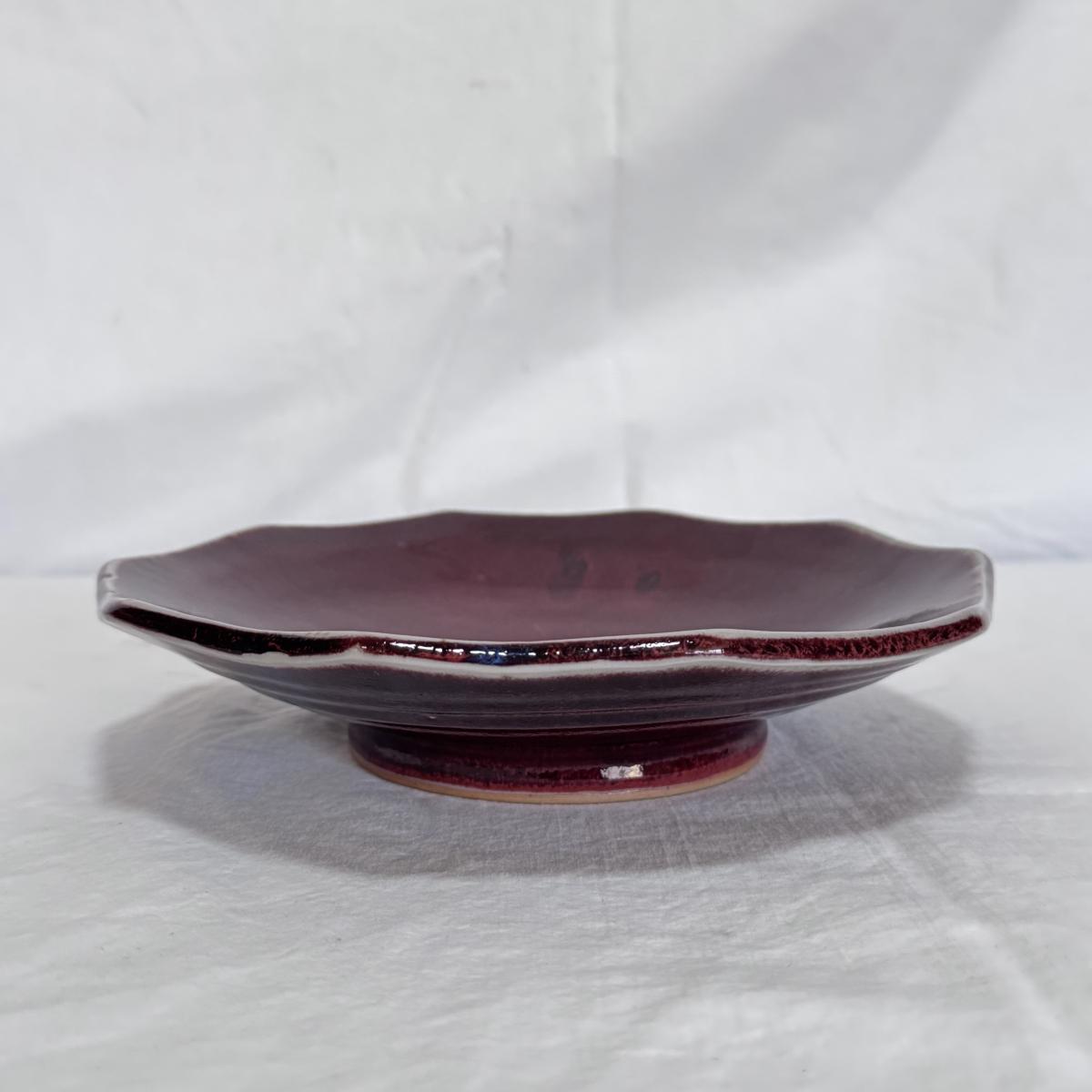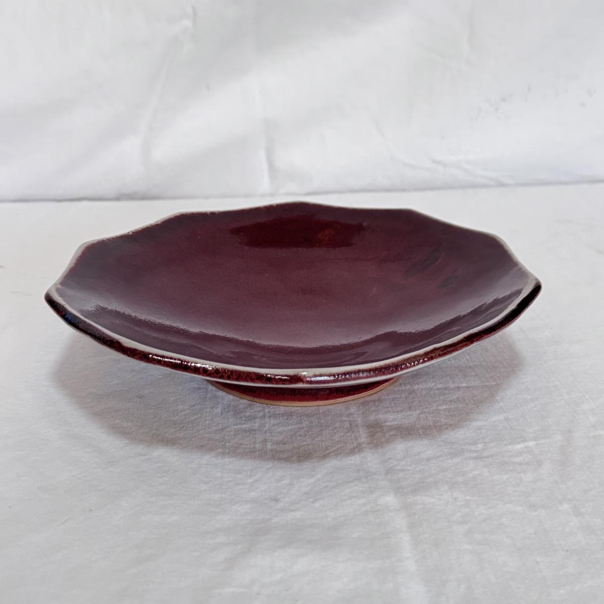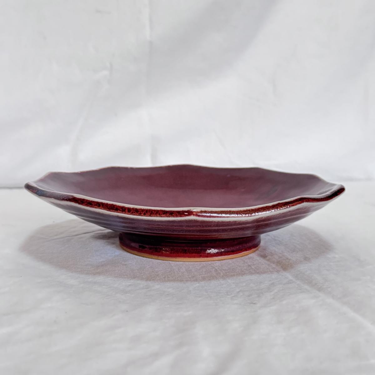 Rich Red Signed Footed Pottery Dish (LR-DZ)