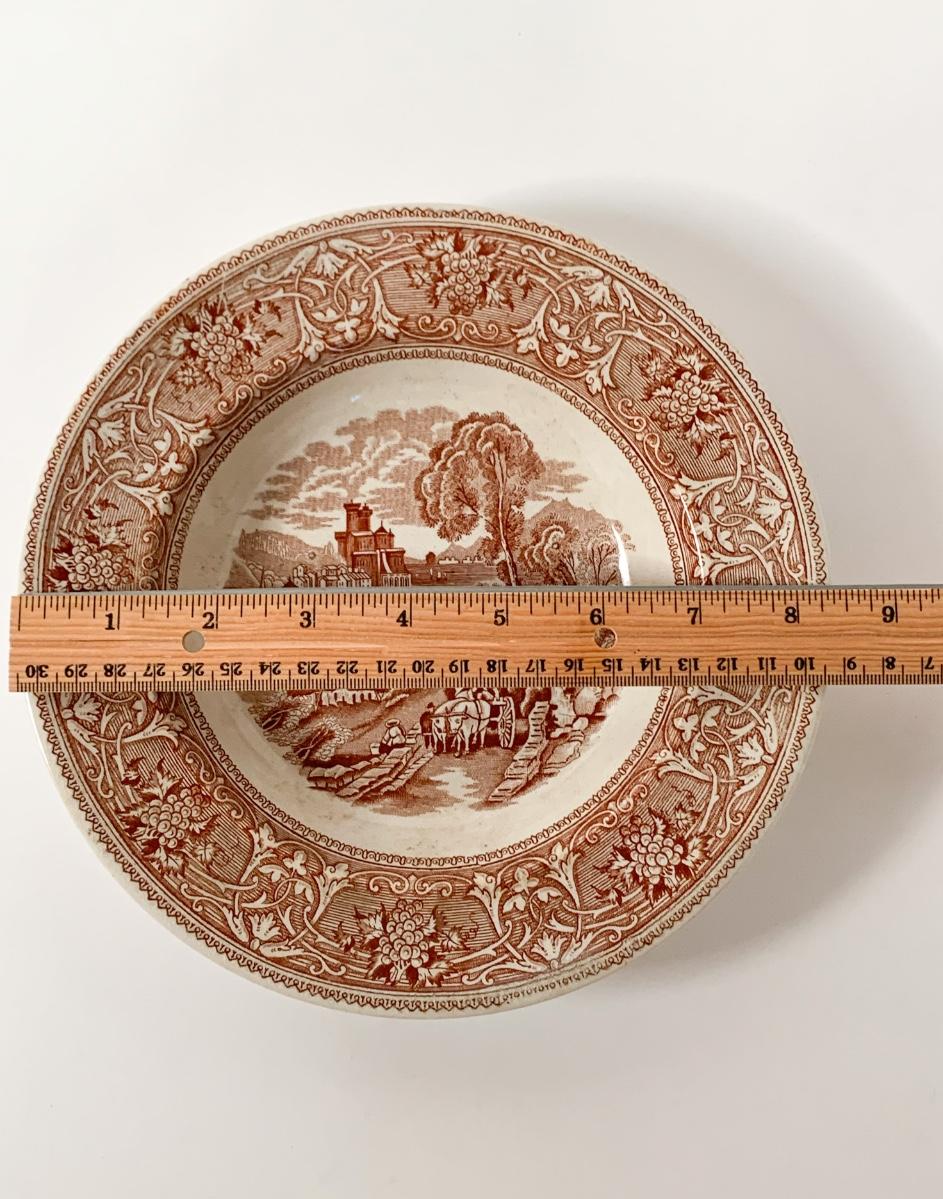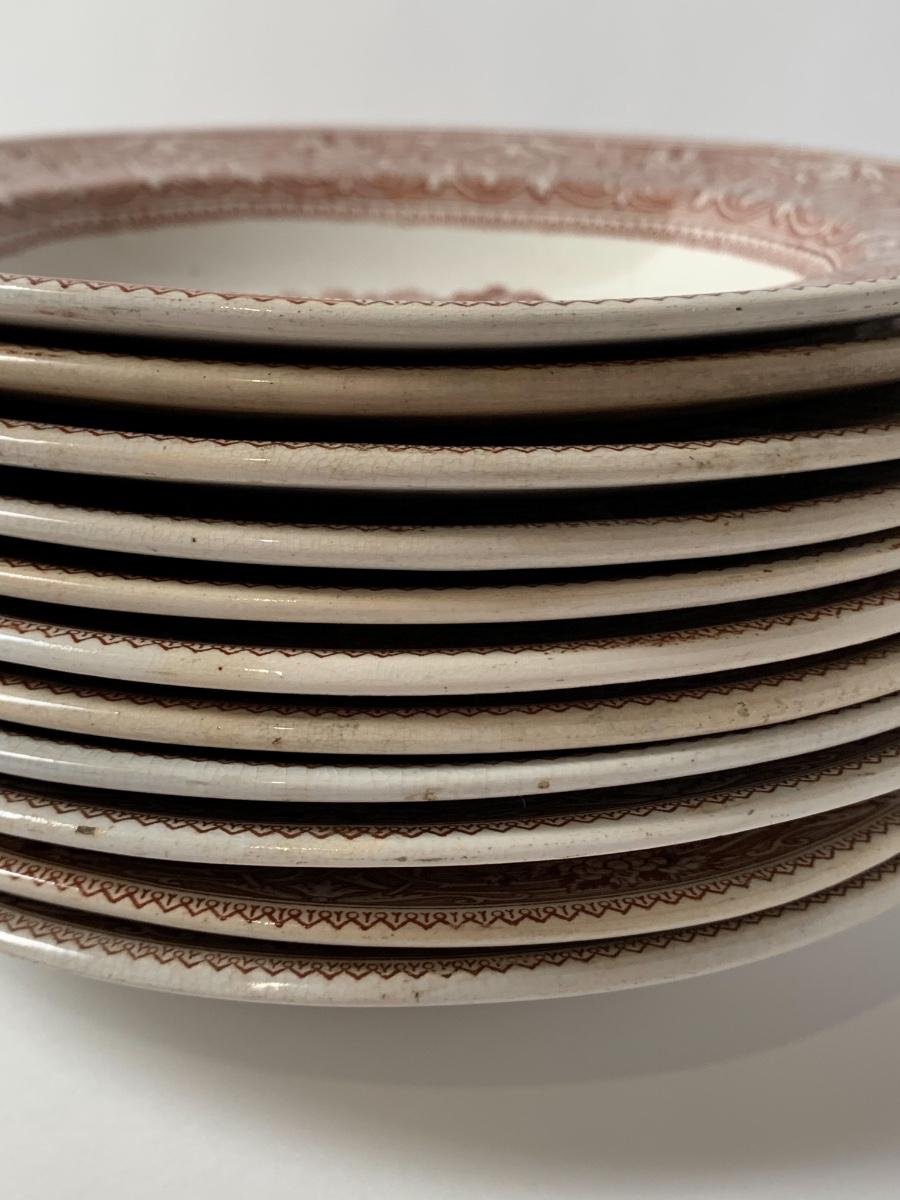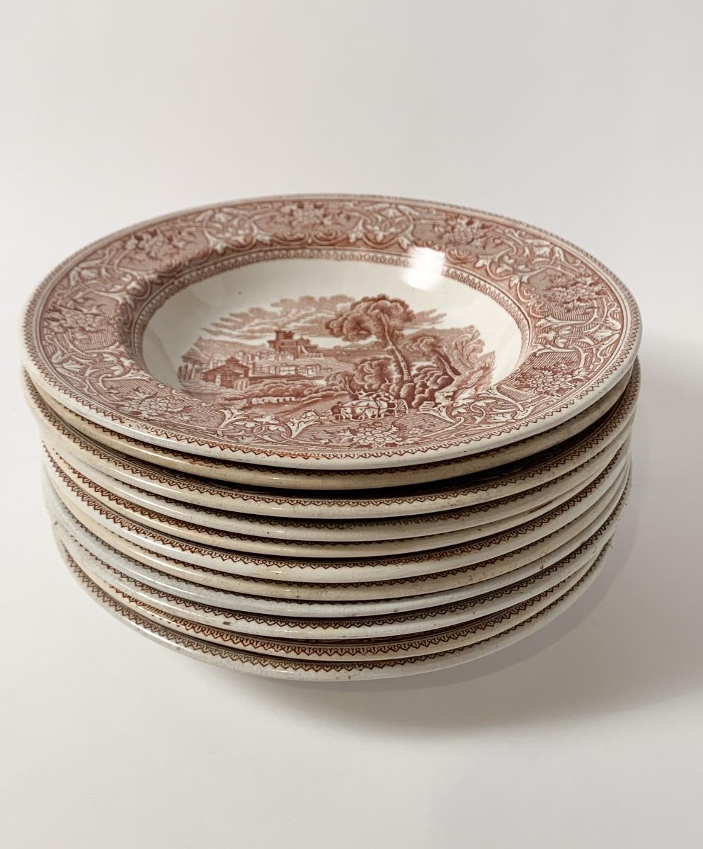 Set of 10 soup bowls. 8.5 inches diameter. 1 has a hairline crack along the back. Rare excellent condition given their age.