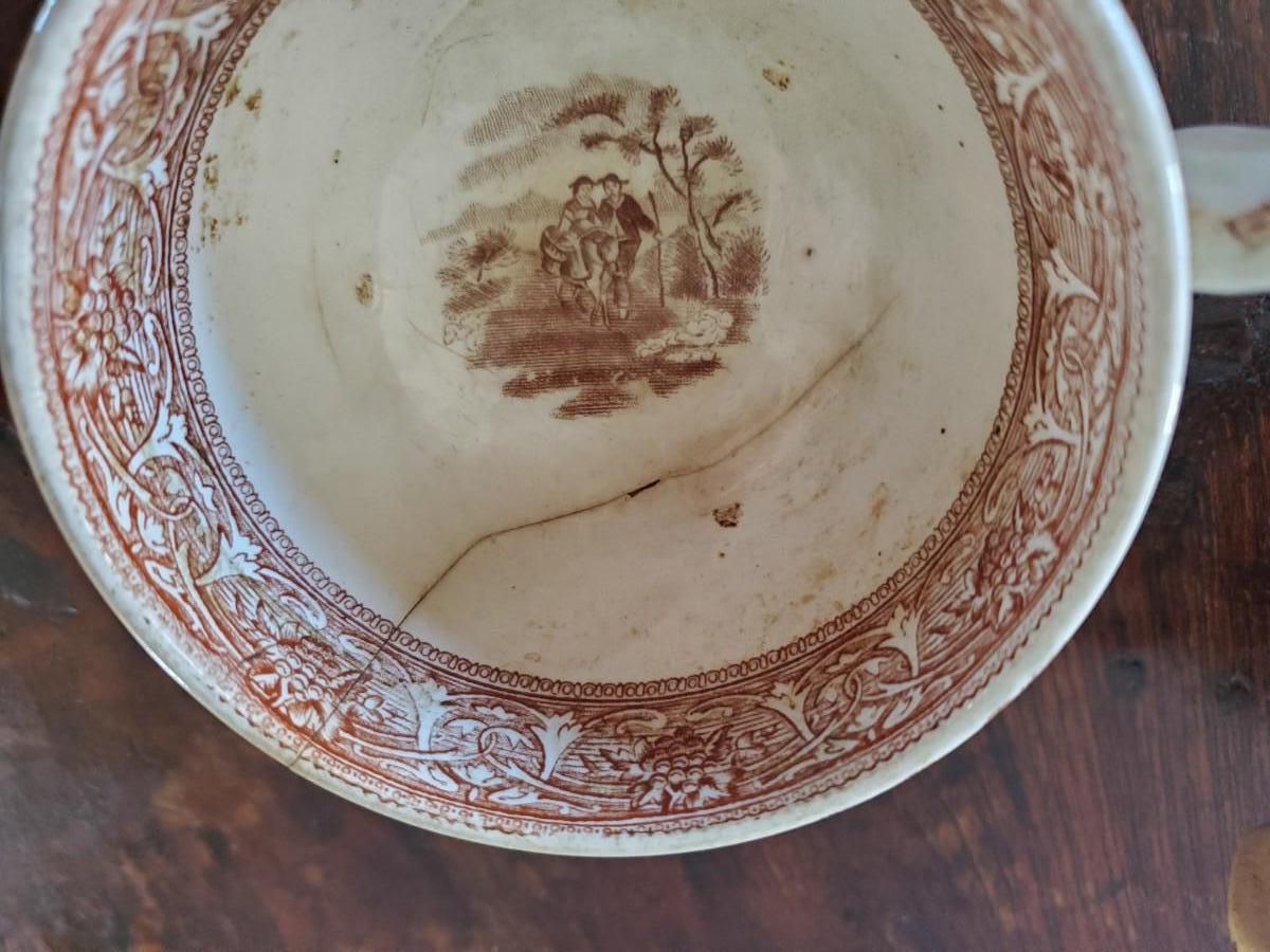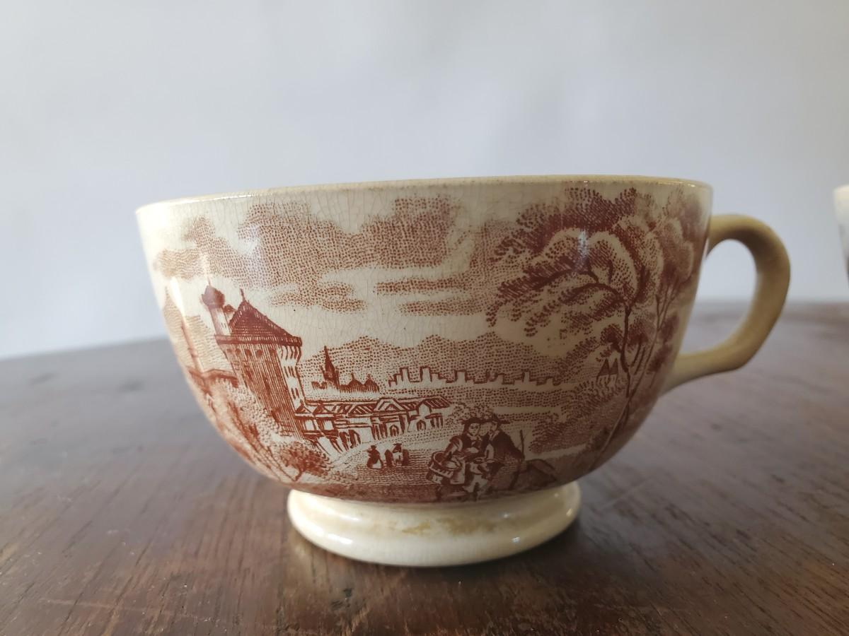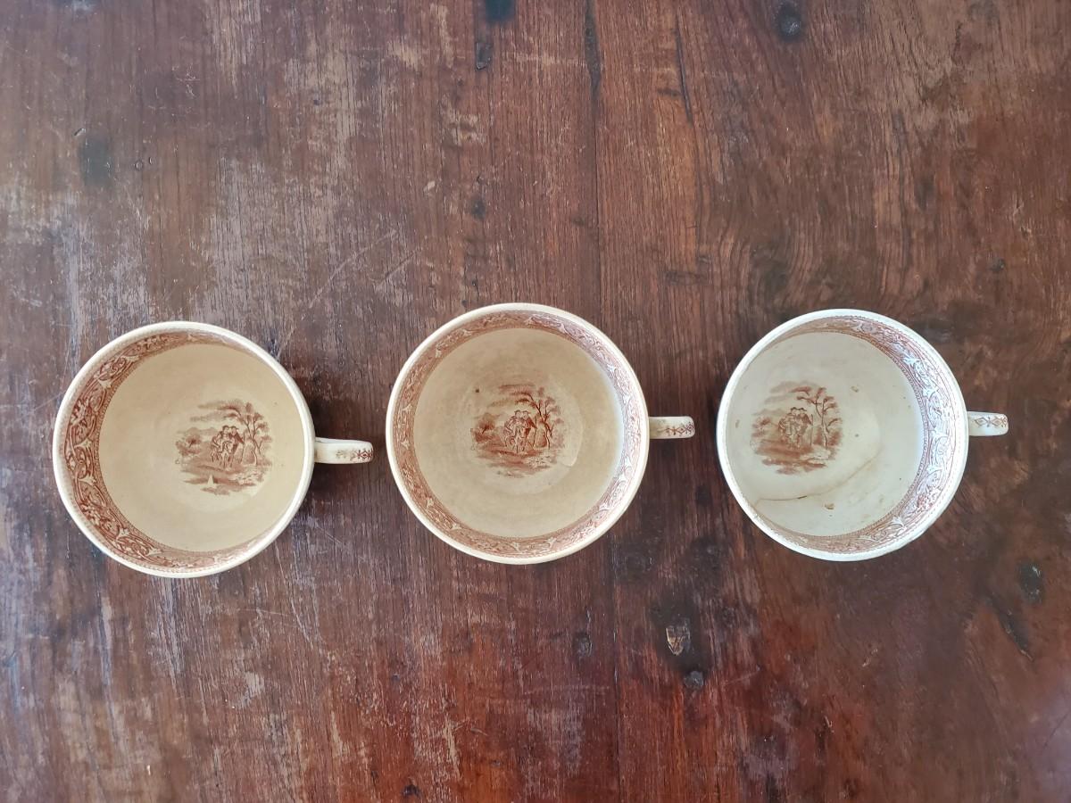 Set of 3 teacups. 1 has a crack; the other two are in excellent condition for their age.
