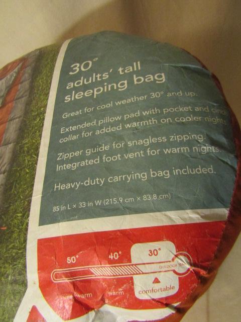 Embark 30 Degree Adult Tall Sleeping Bag- Small Split in Storage/Carrying Bag. Please See Pictures.