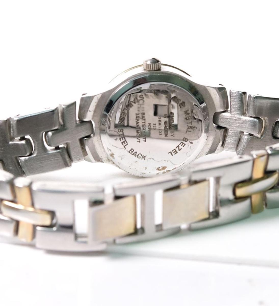 Band measures approx. 6". Some gold tone is rubbing off. Unsure of working condition, needs a battery.
