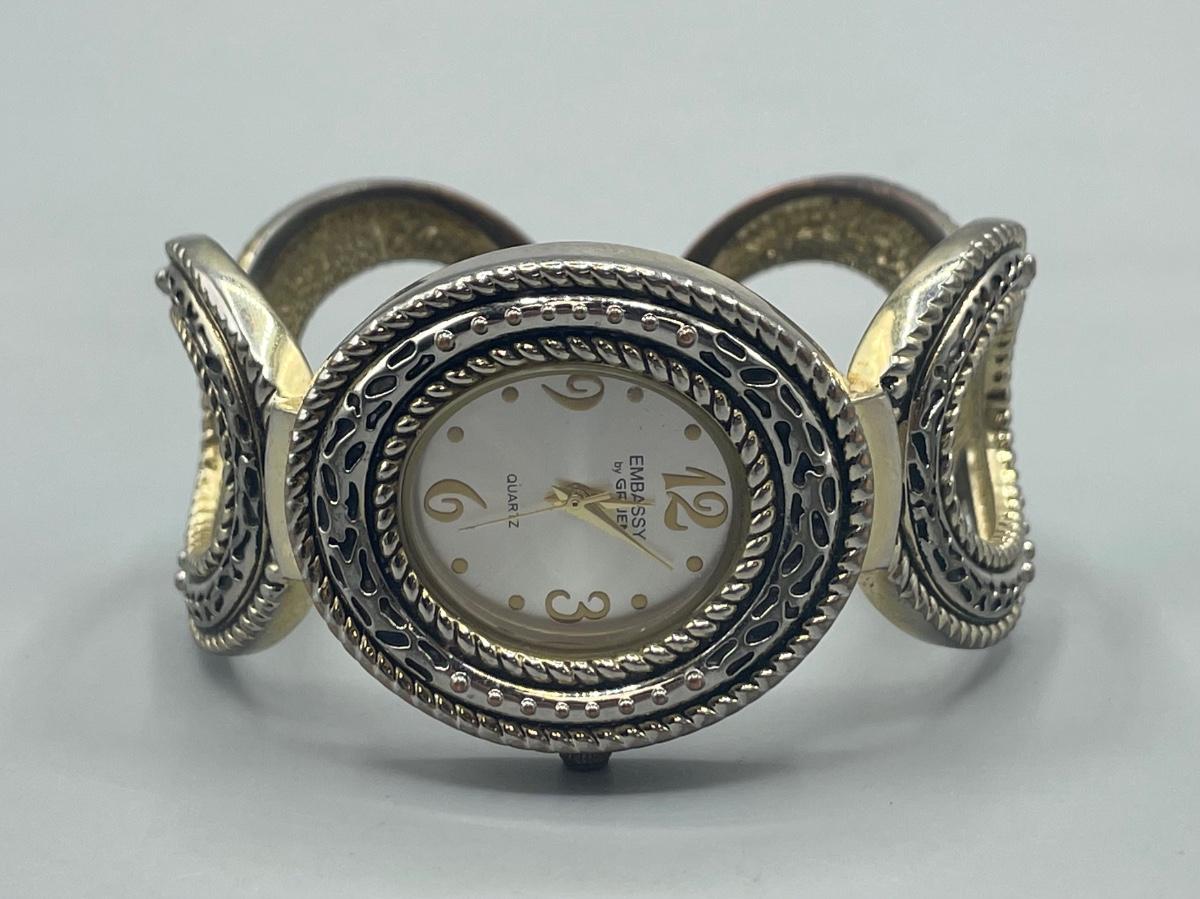 This item is in good condition. It doesn’t seem to work, the battery might need to be changed. It is a very cute watch for women to wear as an accessory.