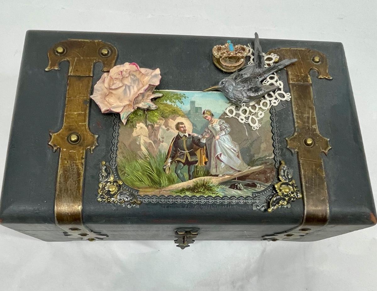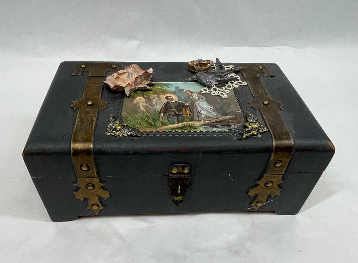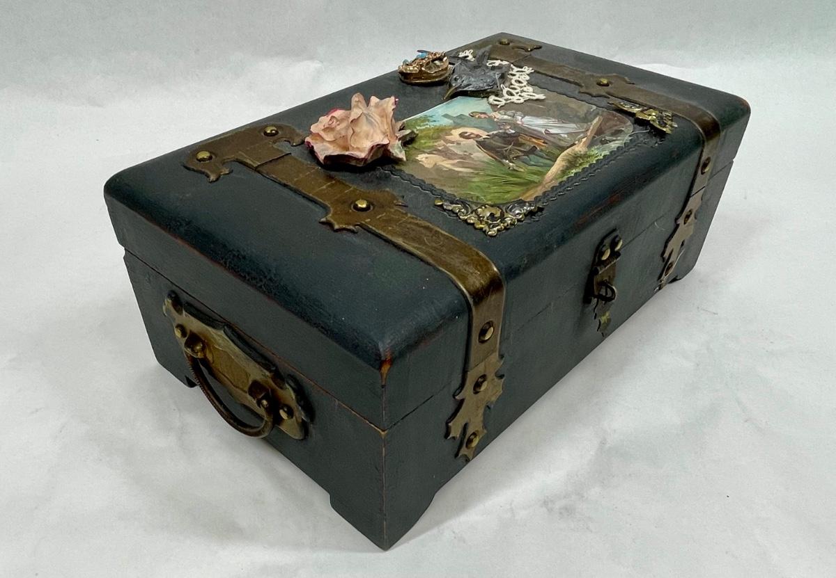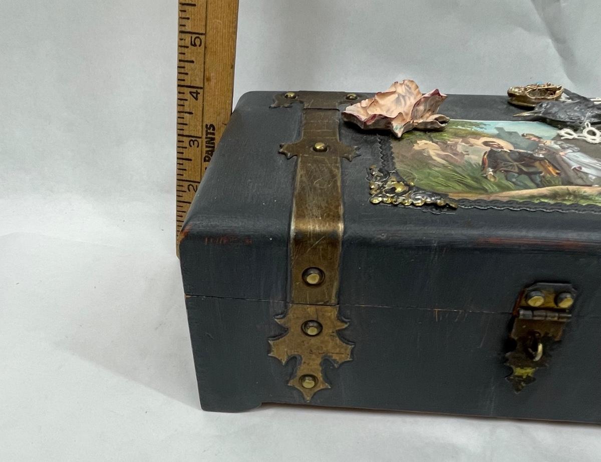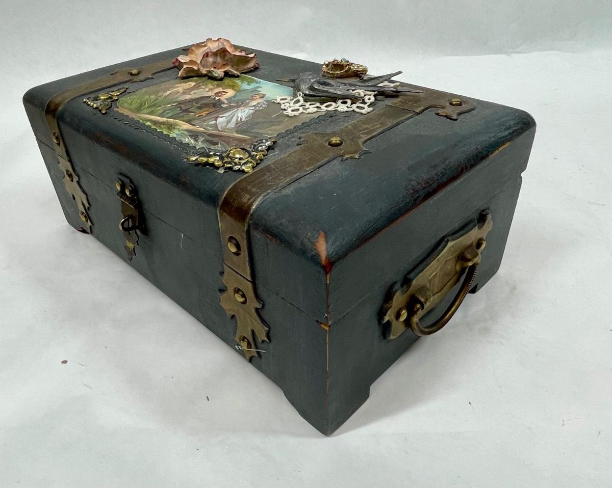 Embellished Wood Jewelry Treasure Chest Box