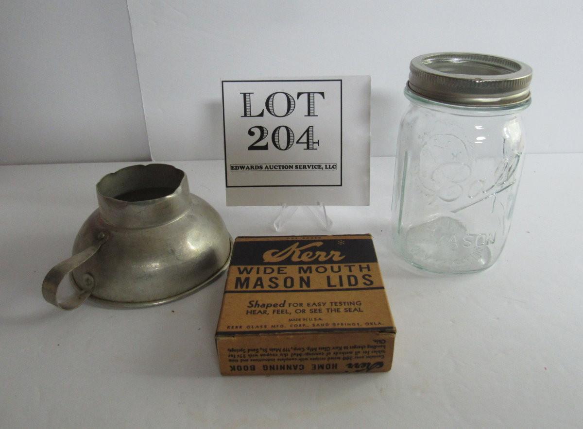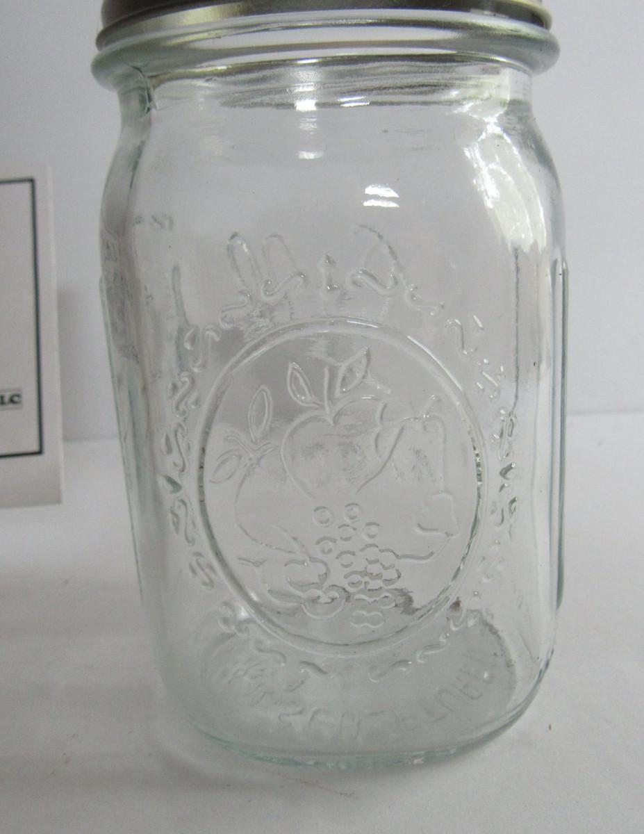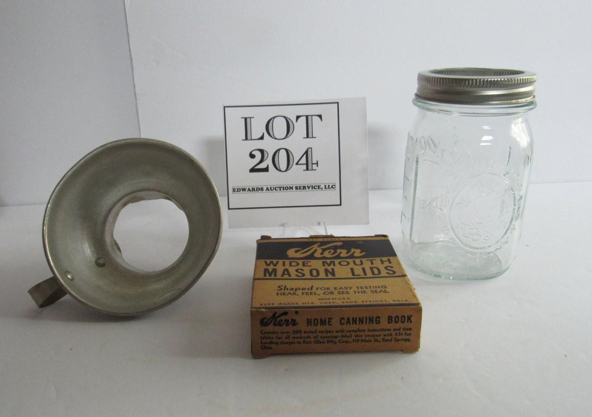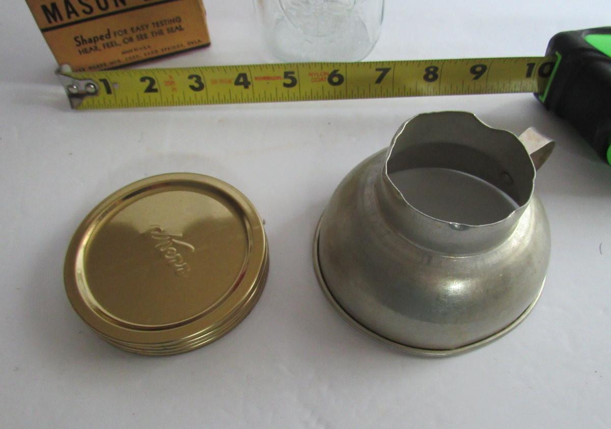 Minor wear on funnel and lid box. Jar is good. Shipping is available at shipping cost plus $5 per box handling fee. See our terms for all details. All sales final, no refunds or exchanges.