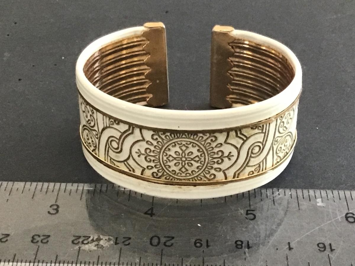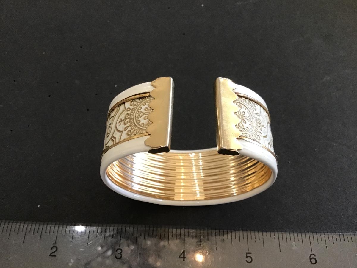 Embossed Cuff Gold Metal White Material