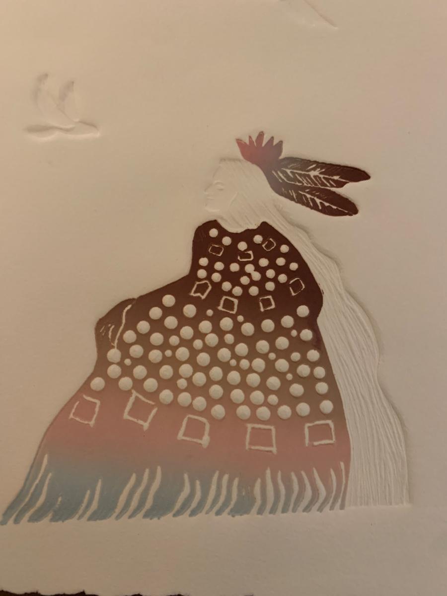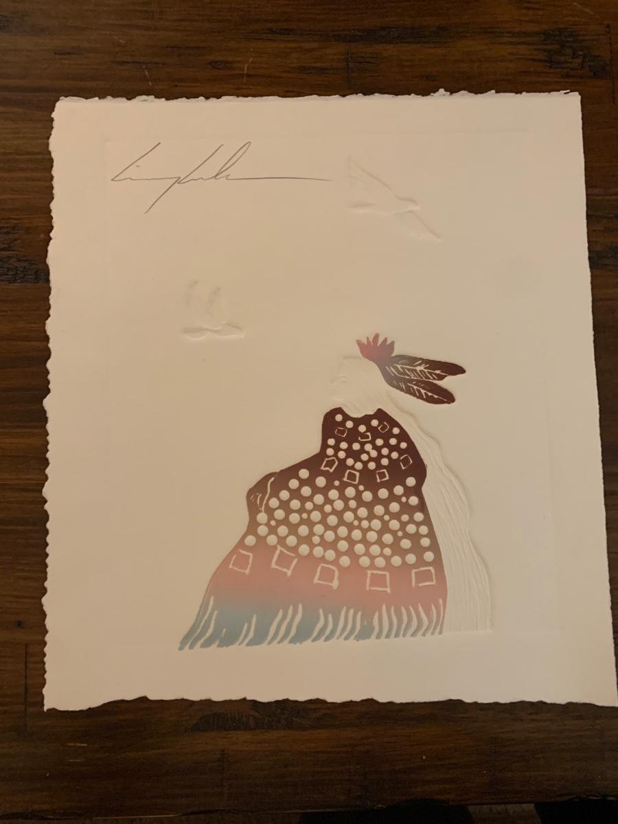 "Sound of Wings “ raised print was hand-tinted by the artist. Measures 10" X 11”. In perfect condition!