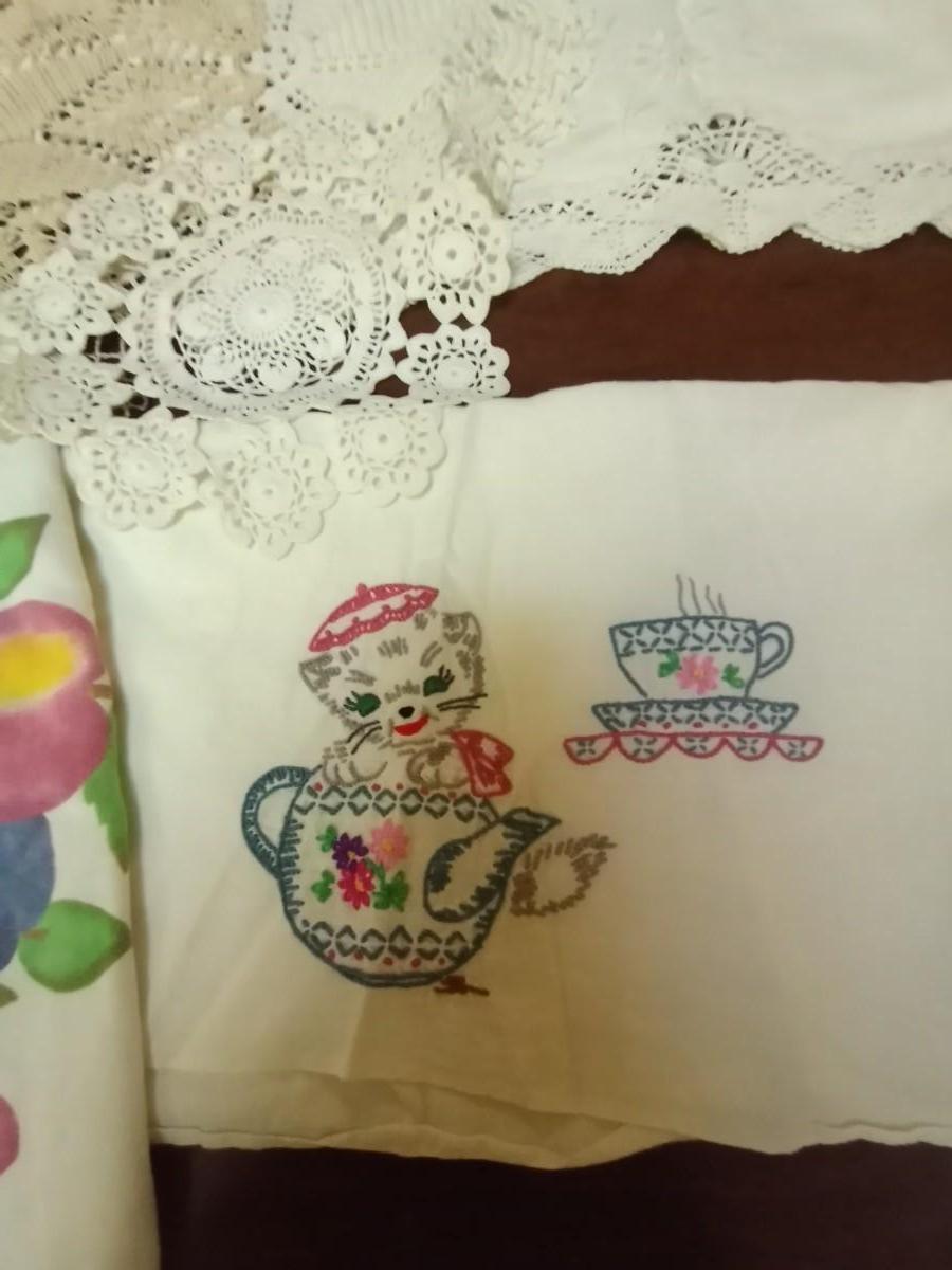 EMBROIDED DISH CLOTHES-APRON AND DOILIES