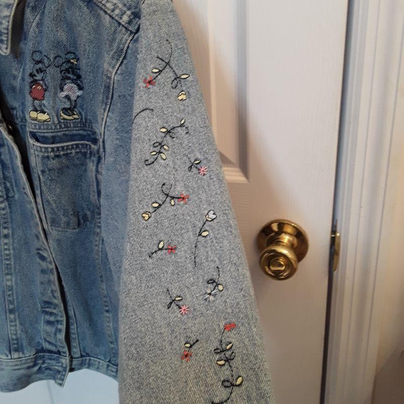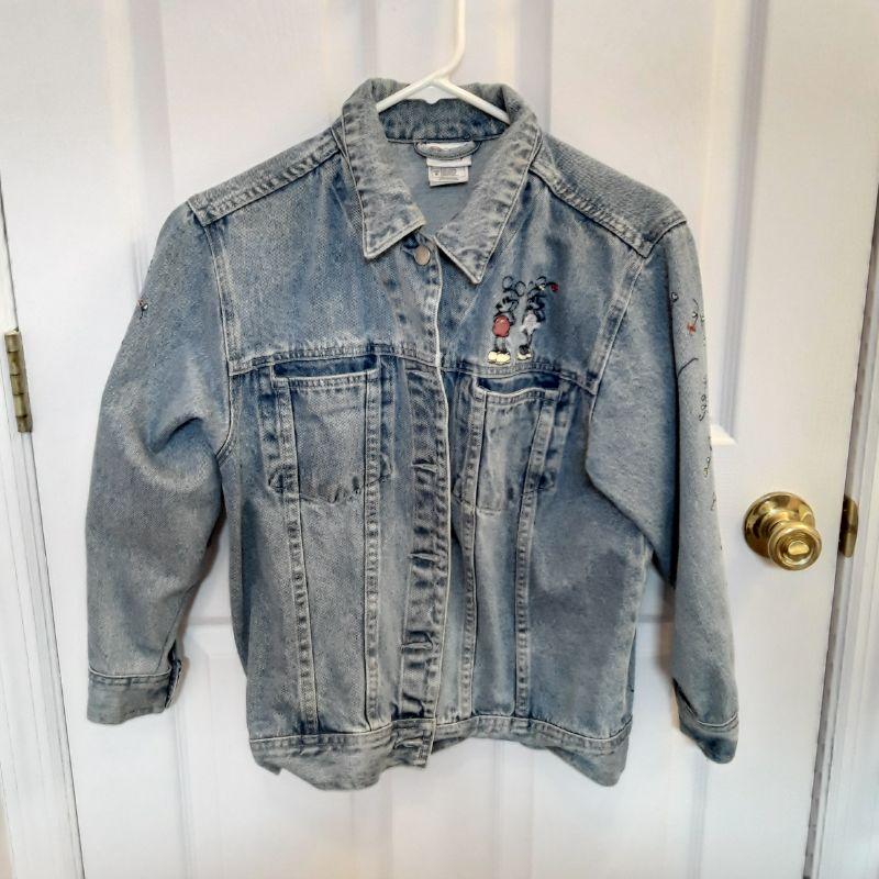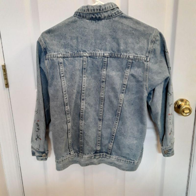 Ladies Size Small Denim Jacket with embroidery above front breast pocket and both sleeves