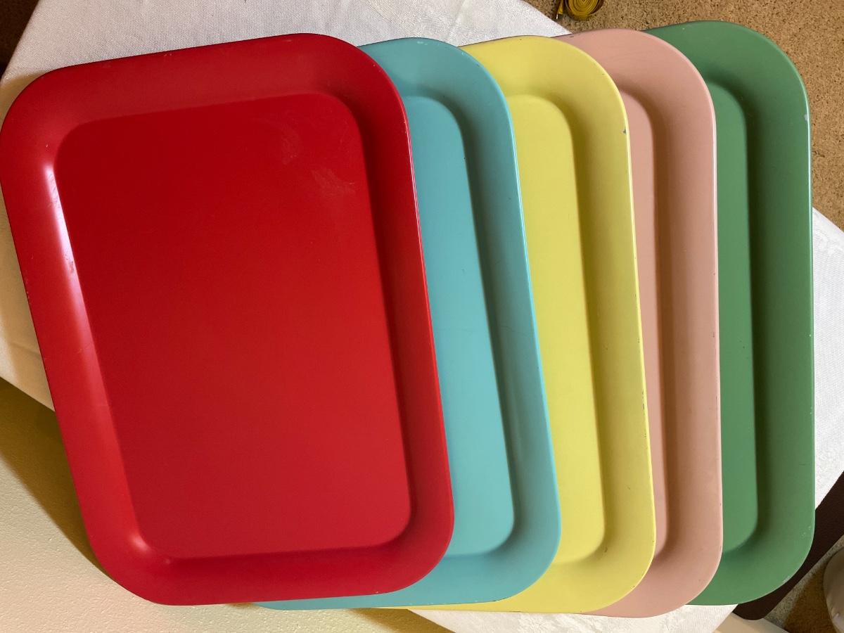 Vintage metal trays, towels and baskets
