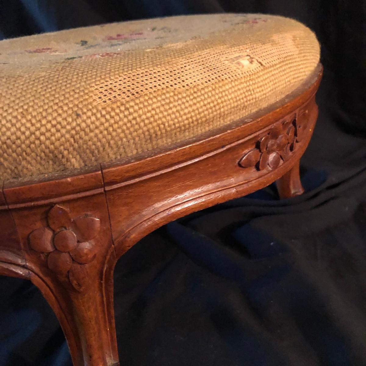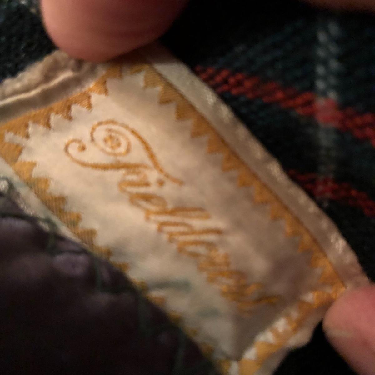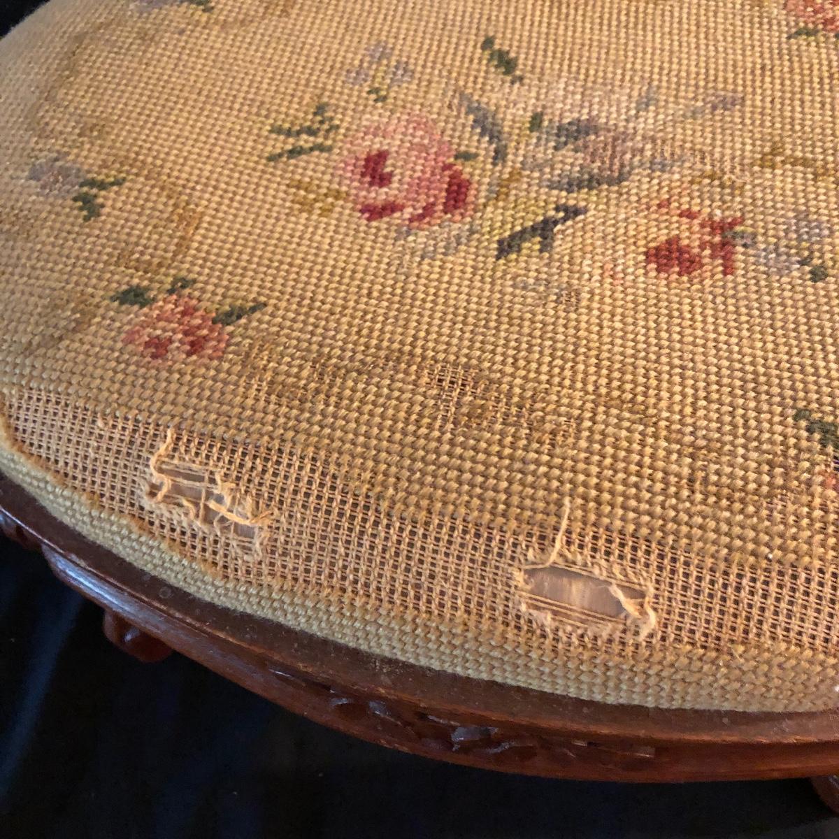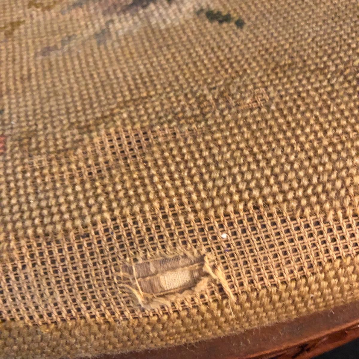 Footstool dimensions are 15.5” x 11” x 7.5”. Please note holes in the embroidered top. The base is solid wood. The red throw is approximately 51” x 68”. It has no tags and is a woven fabric. The plaid blanket feels as if it is wool and is labeled “Fieldcrest.” It is about 85” x 70”. Shipping Available.