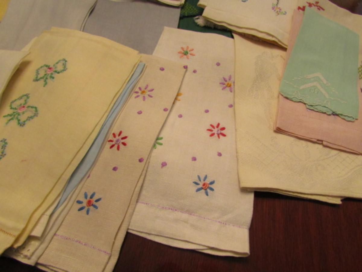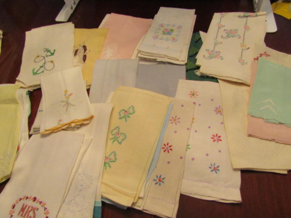 Embroidered Napkins and Hand Towels- Approx 40 Pieces (C). May be some areas of discoloration/spotting.