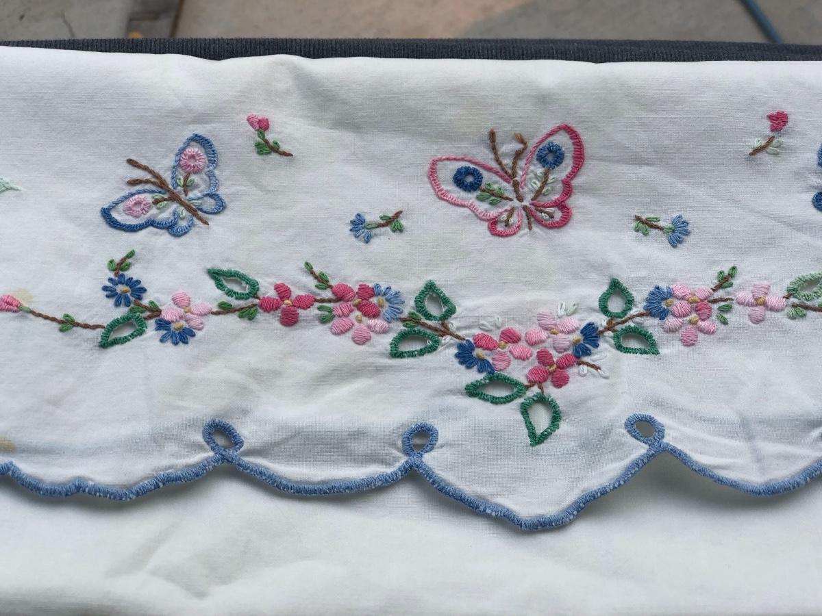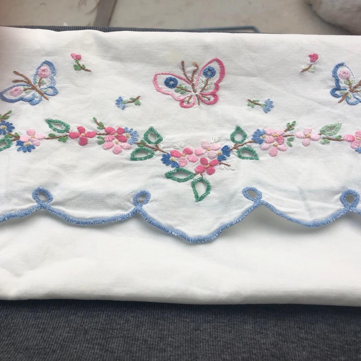 A sweet vintage pillow case with hand stitched details. Standard pillow size, all cotton, hand stitched details from the 1940s. Granny chic- sweet!🌼🌸🌼