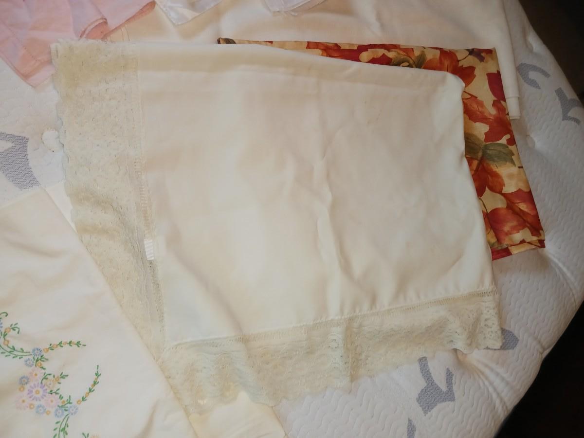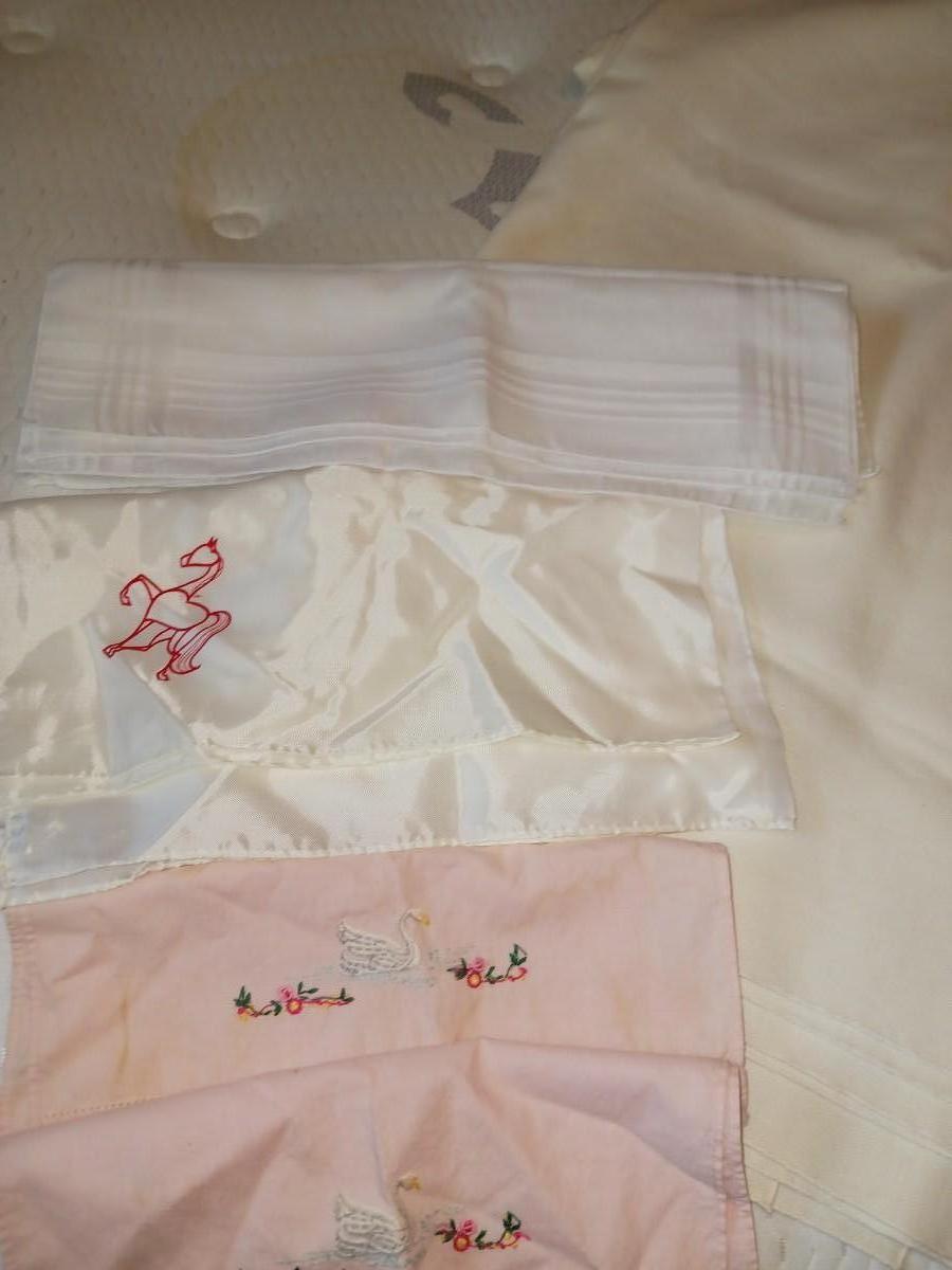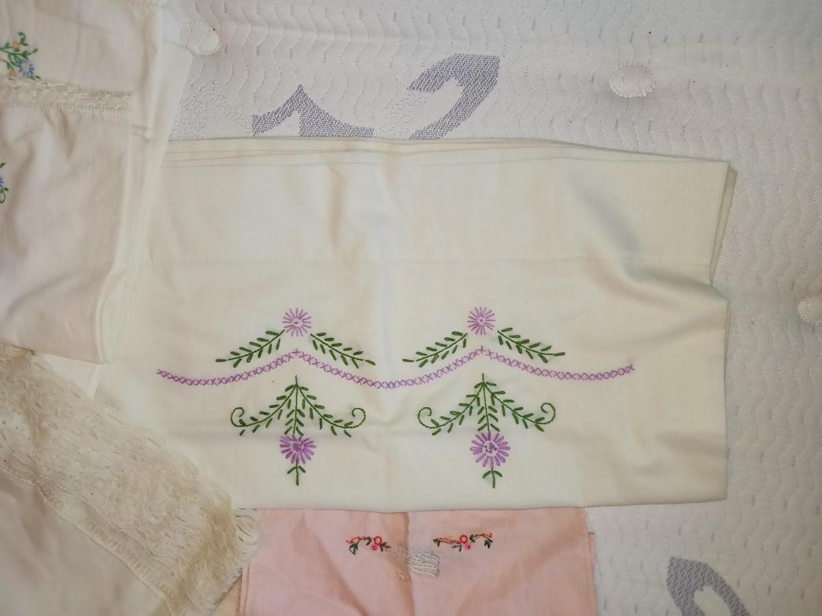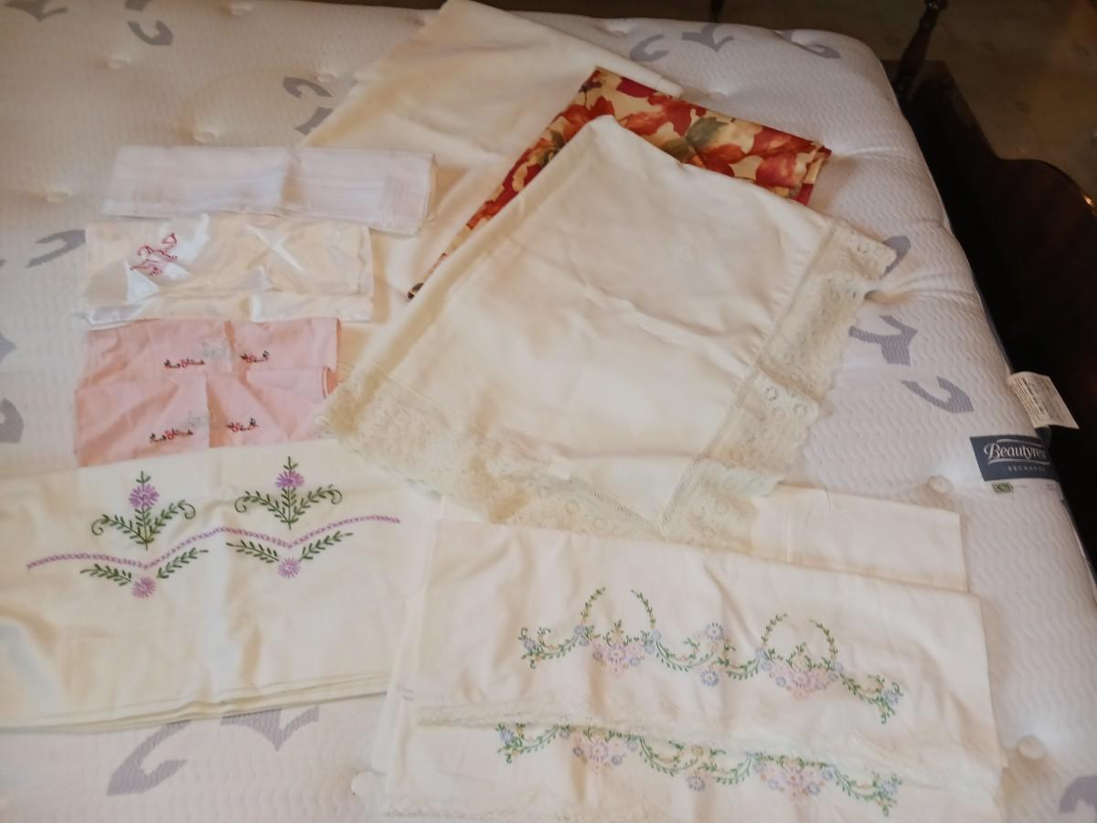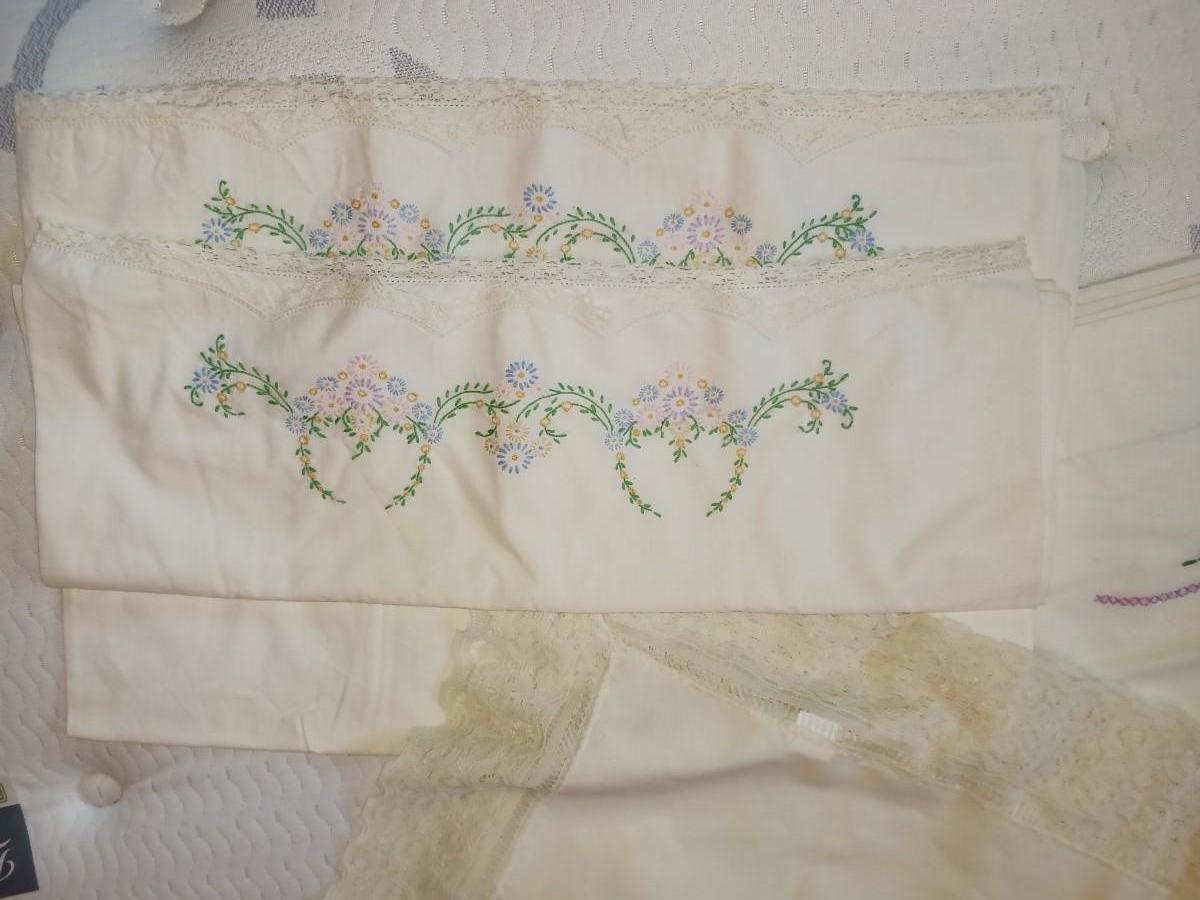 EMBROIDERED PILLOW CASES & TEA TOWELS, LINEN TABLECLOTHS