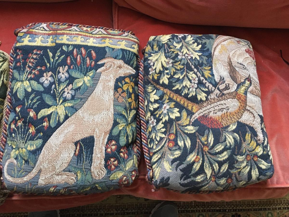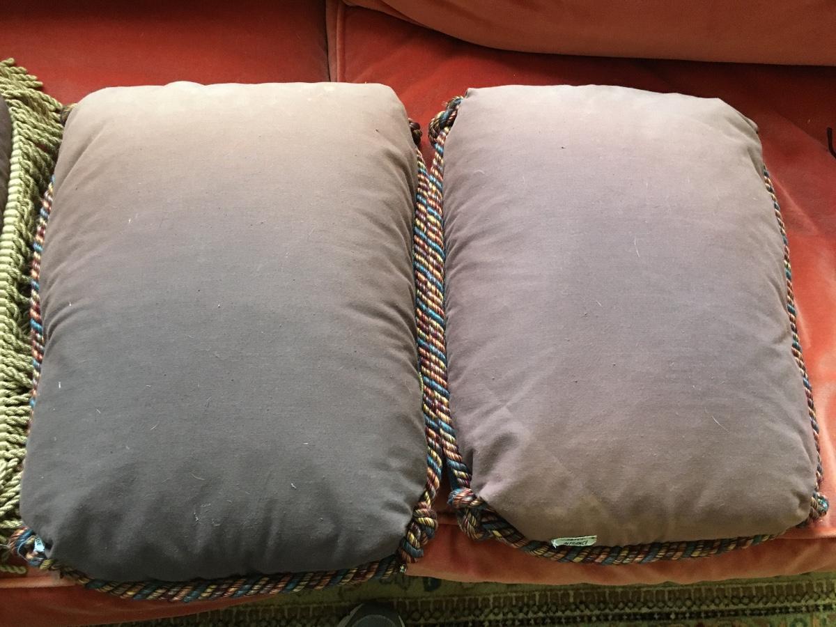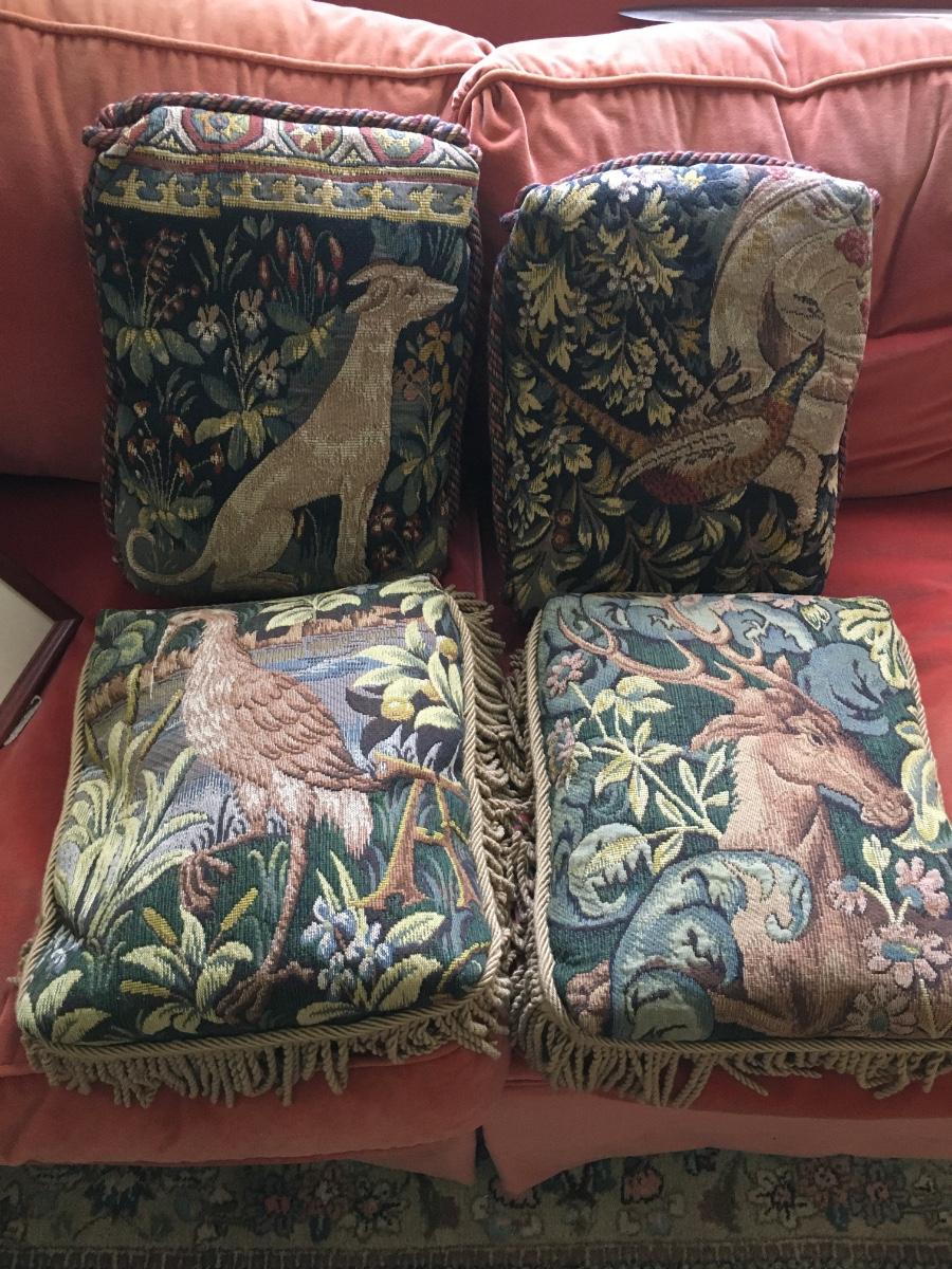 2 sets of 2. 1 set with fringe. Down filled. Medieval theme.