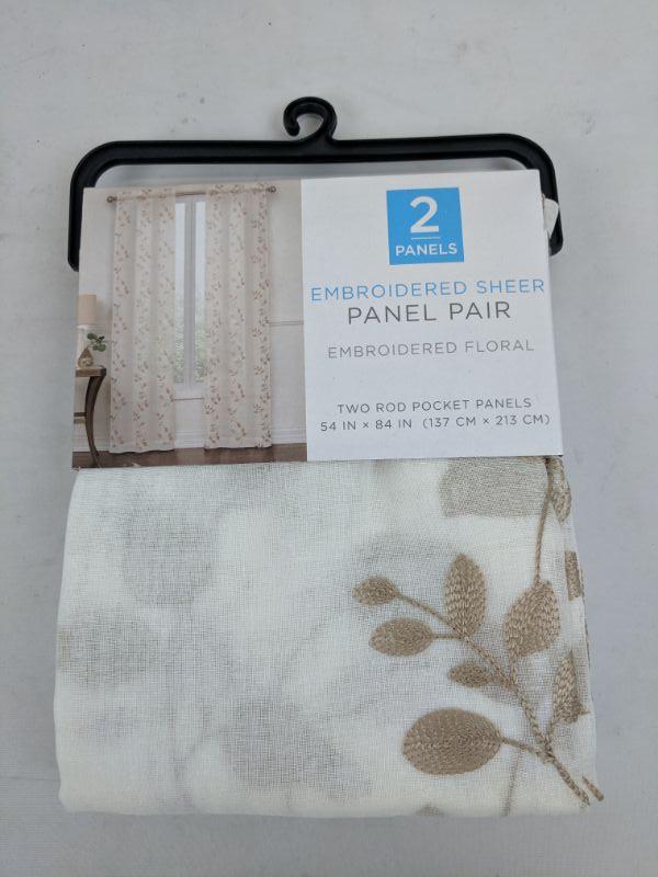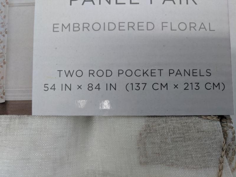 Embroidered Sheer Panel Pair, Floral, Rod Pocket, 54" x 84" - New