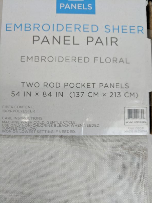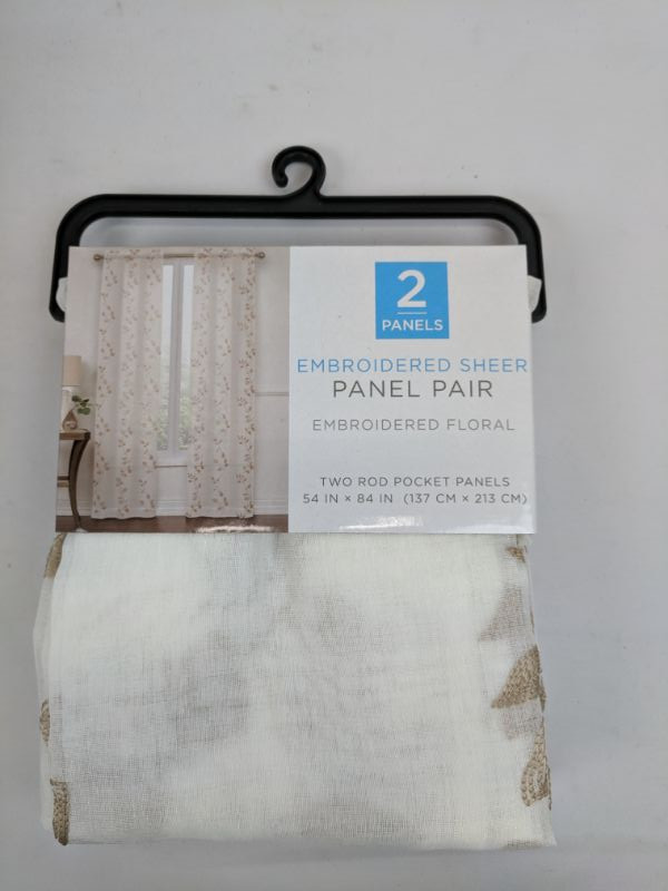 Embroidered Sheer Panel Pair, Floral, Rod Pocket, 54" x 84" - New