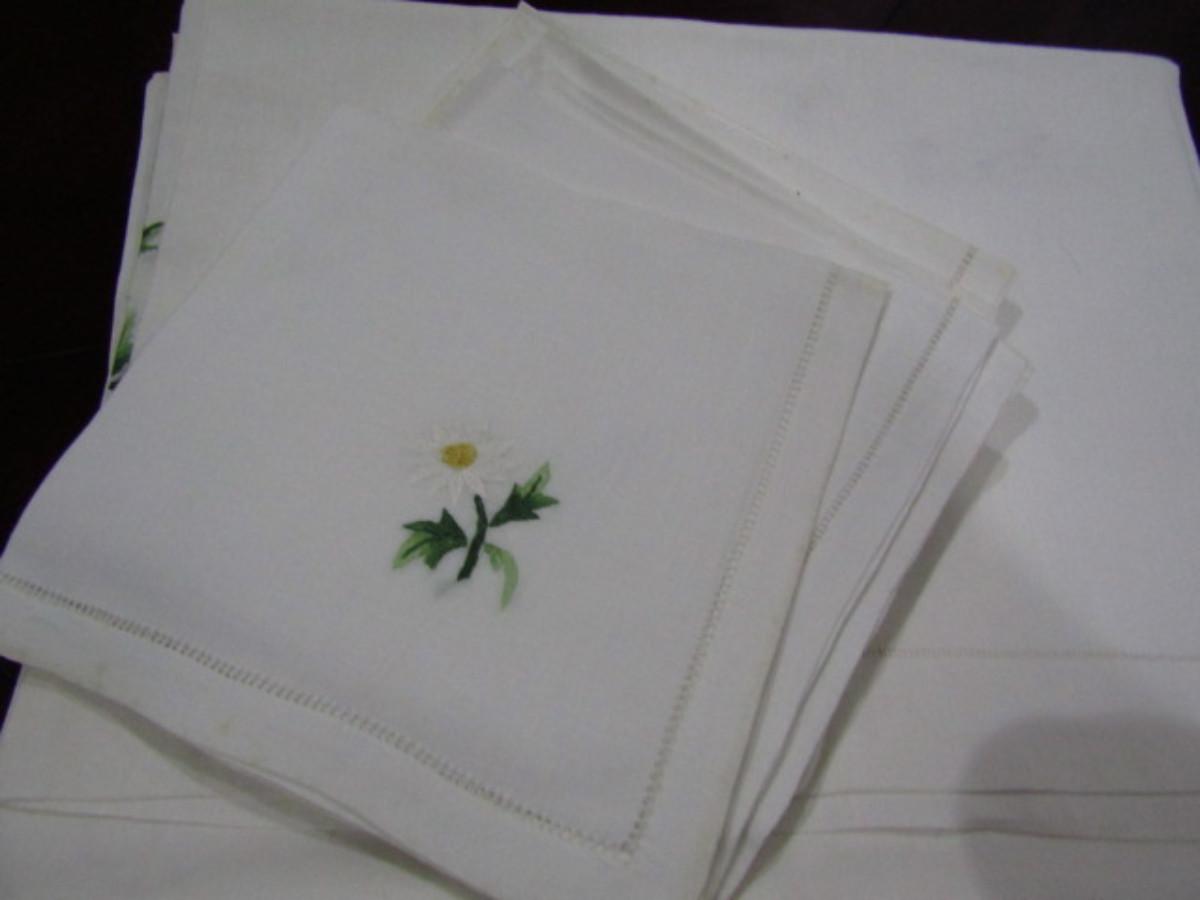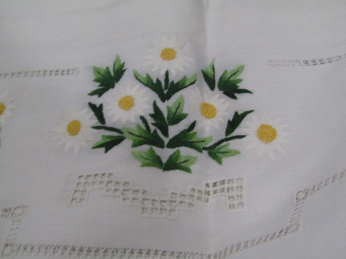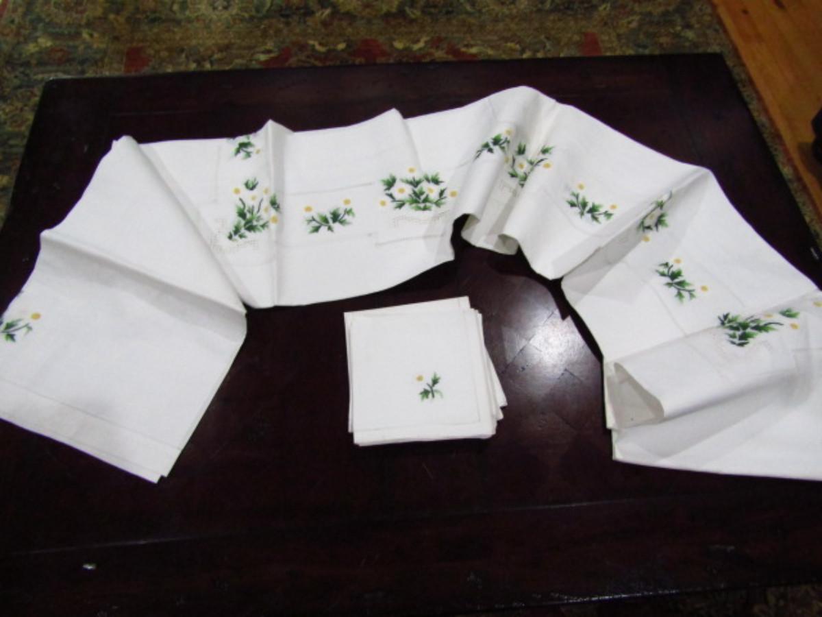 Embroidered Table Cloth and Napkins- White and Yellow Flowers (DR)