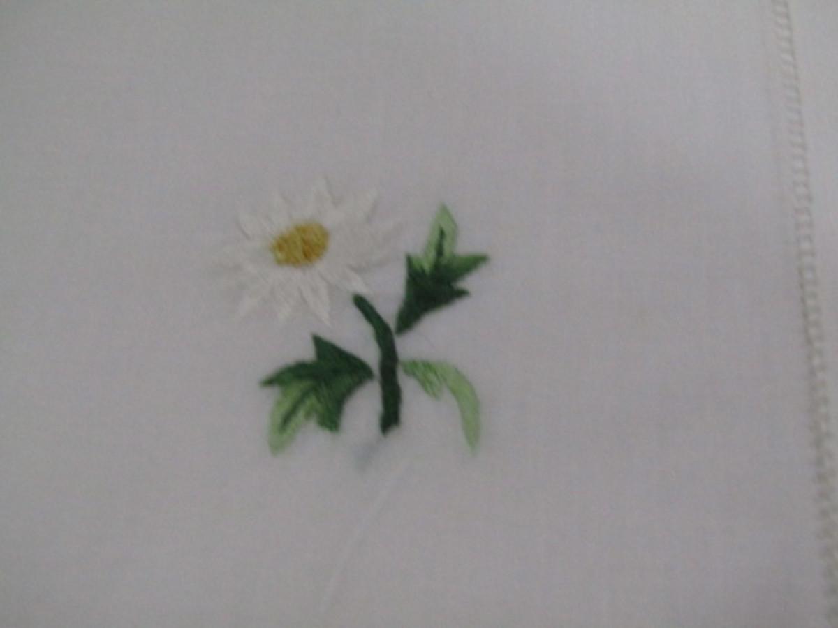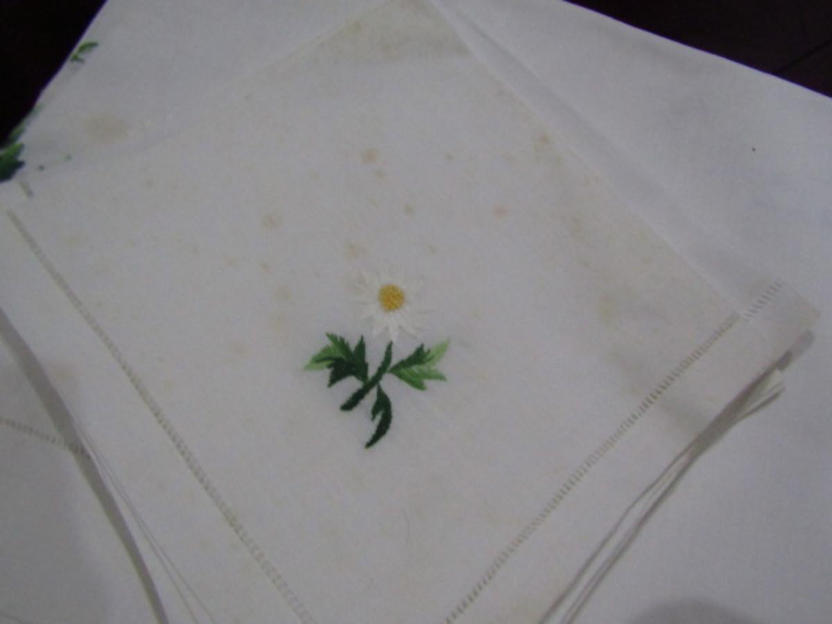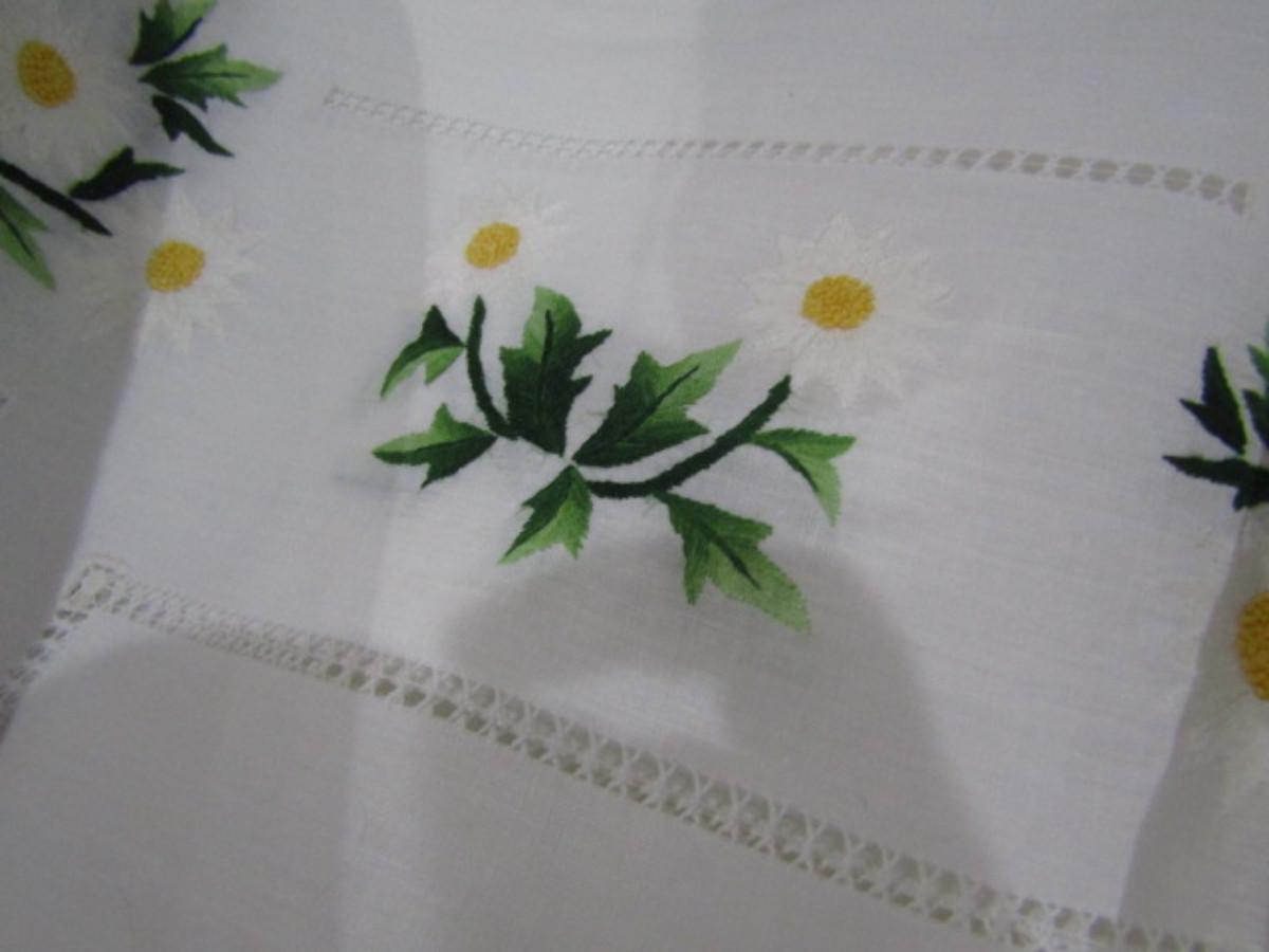Embroidered Table Cloth and Napkins- White and Yellow Flowers (DR)