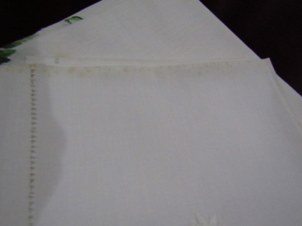 Embroidered Table Cloth and Napkins (DR). Tablecloth measures approx 68" x 124". Twelve napkins. Some Discoloration- please see all pictures.