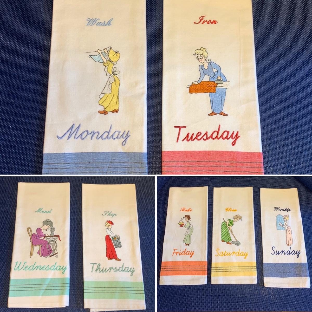 Embroideried 7 Days of the Week Kitchen Hand Towels