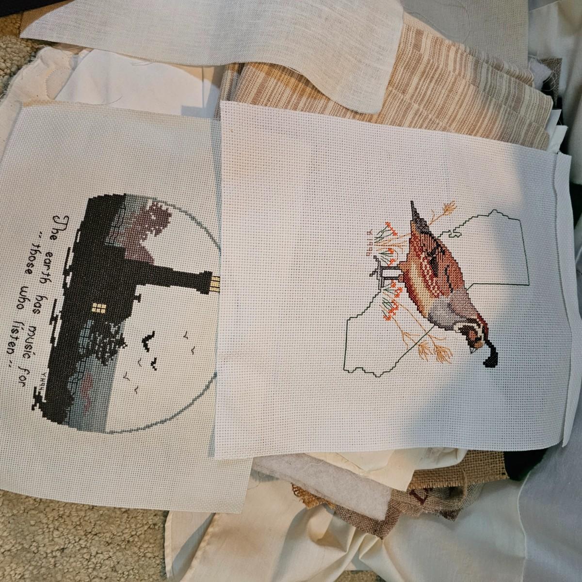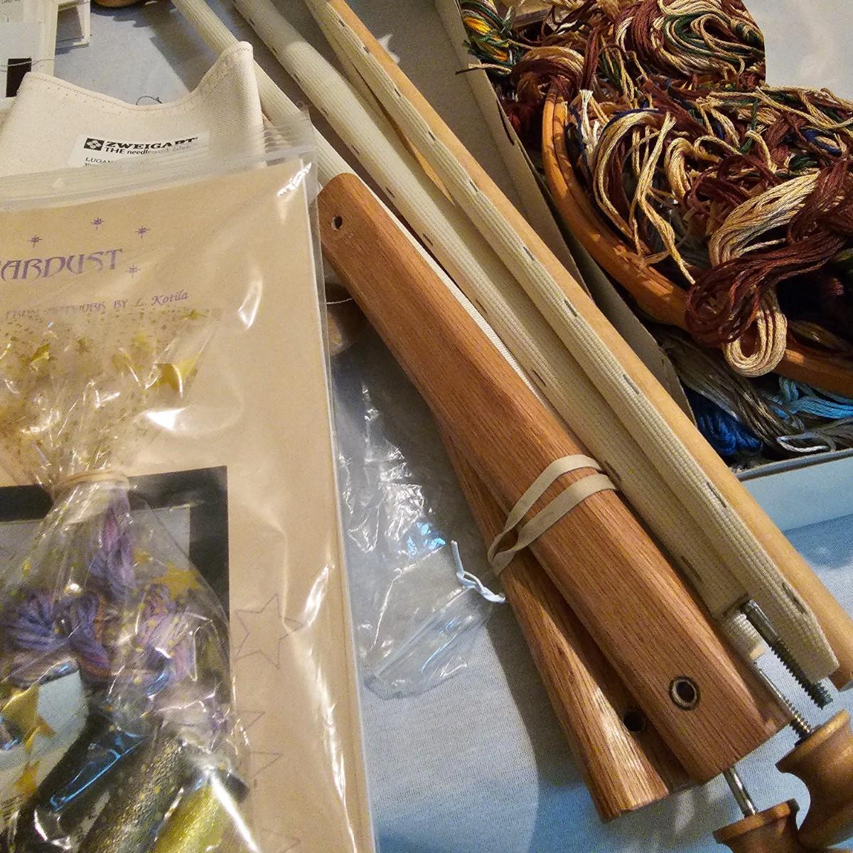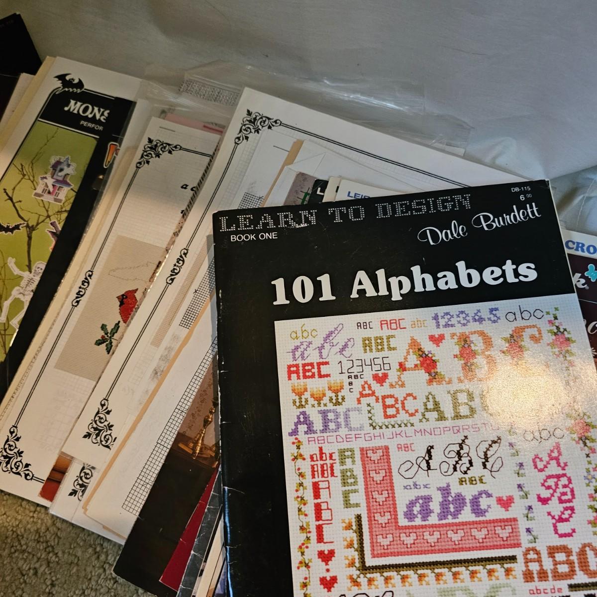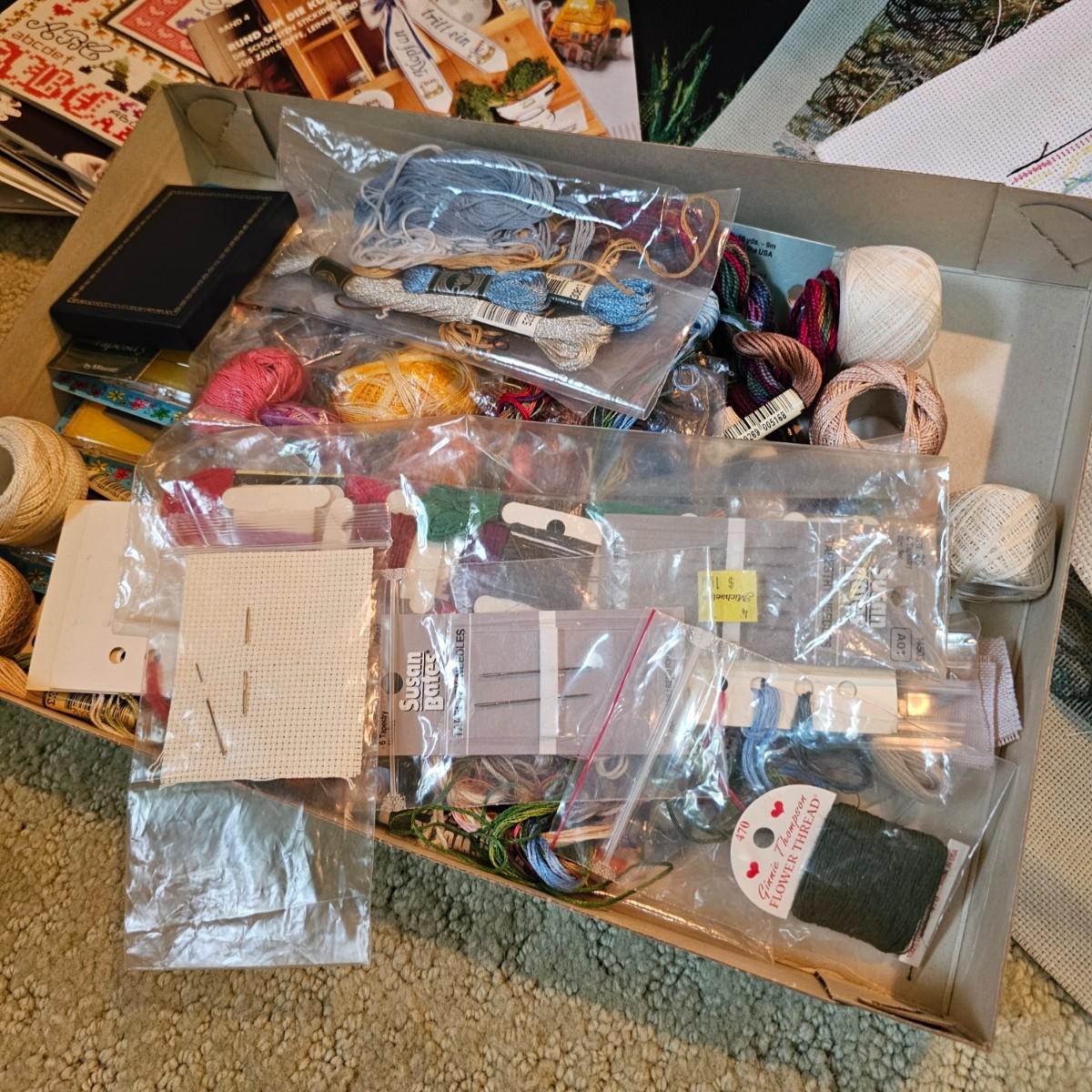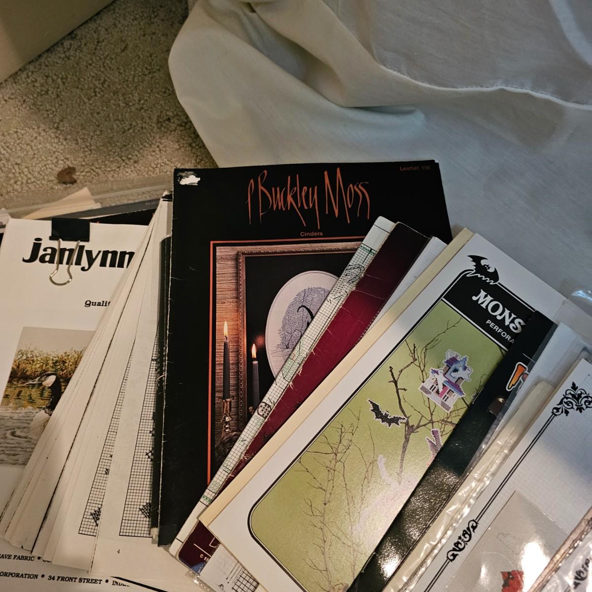 Supplies, fabric, floss, needles, patterns. Everything you need to work on embroidery and needlepoint crafts. Stretchers, yarn, transfer paper, etc. Many gorgeous started or completed projects are included. See photos for details. Local pickup only.