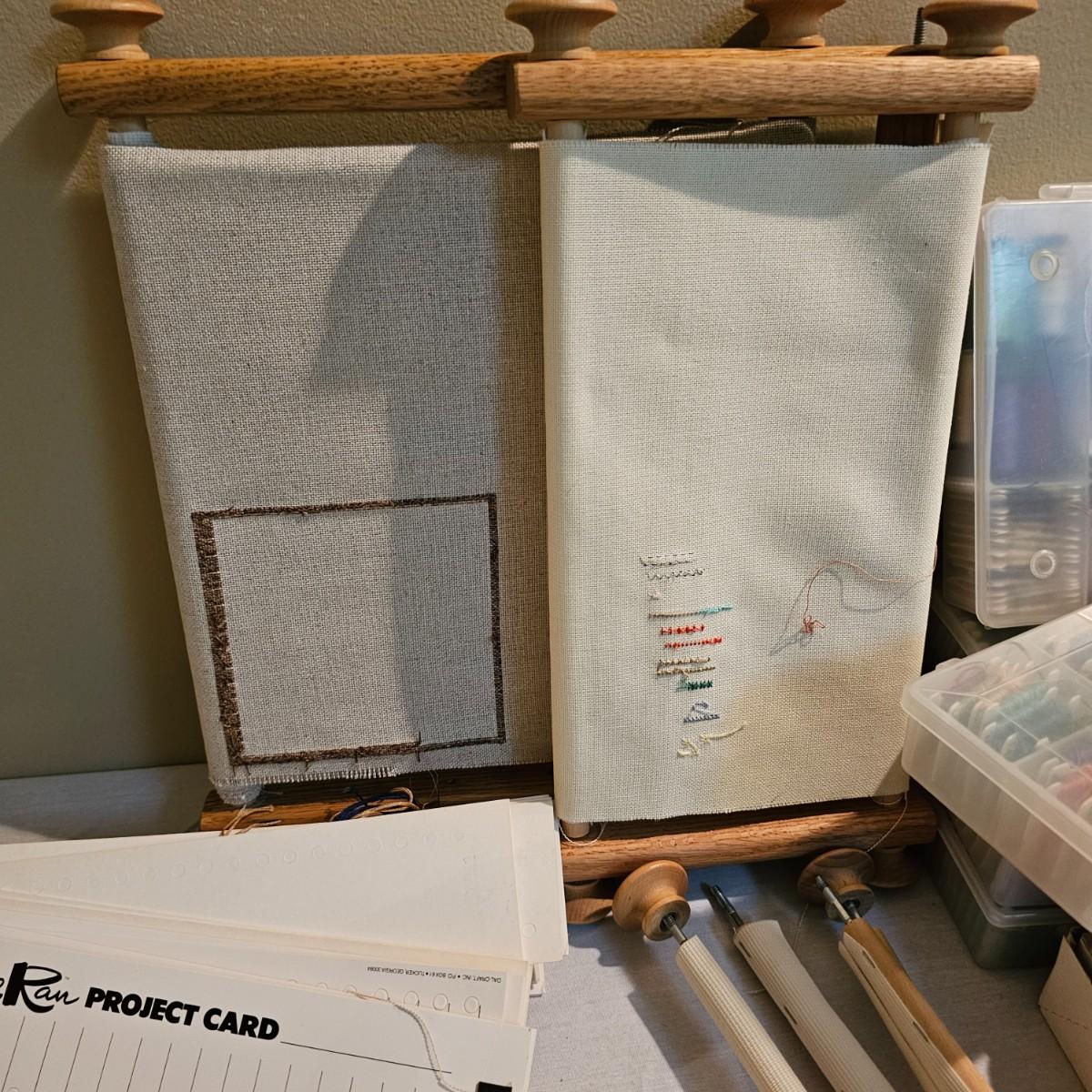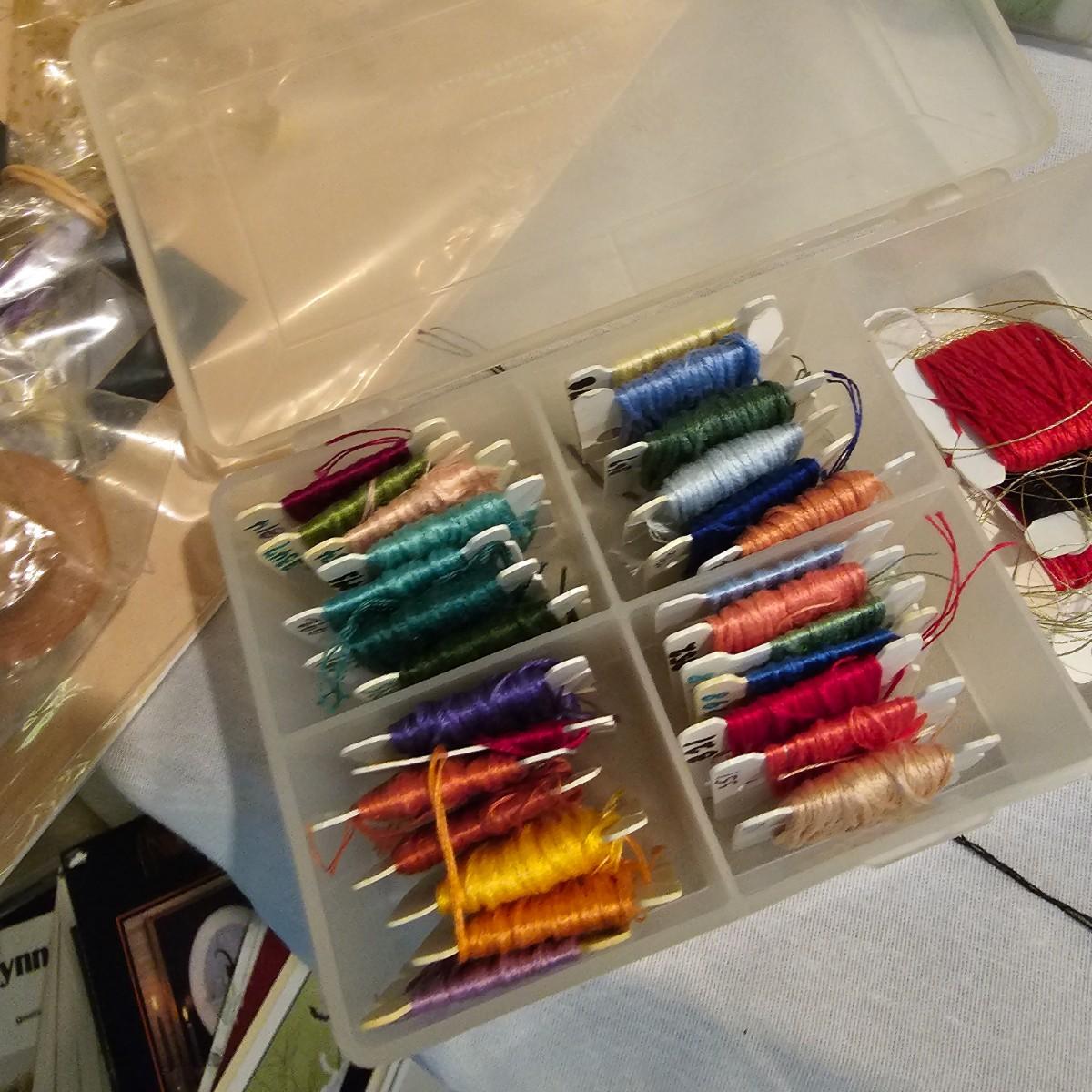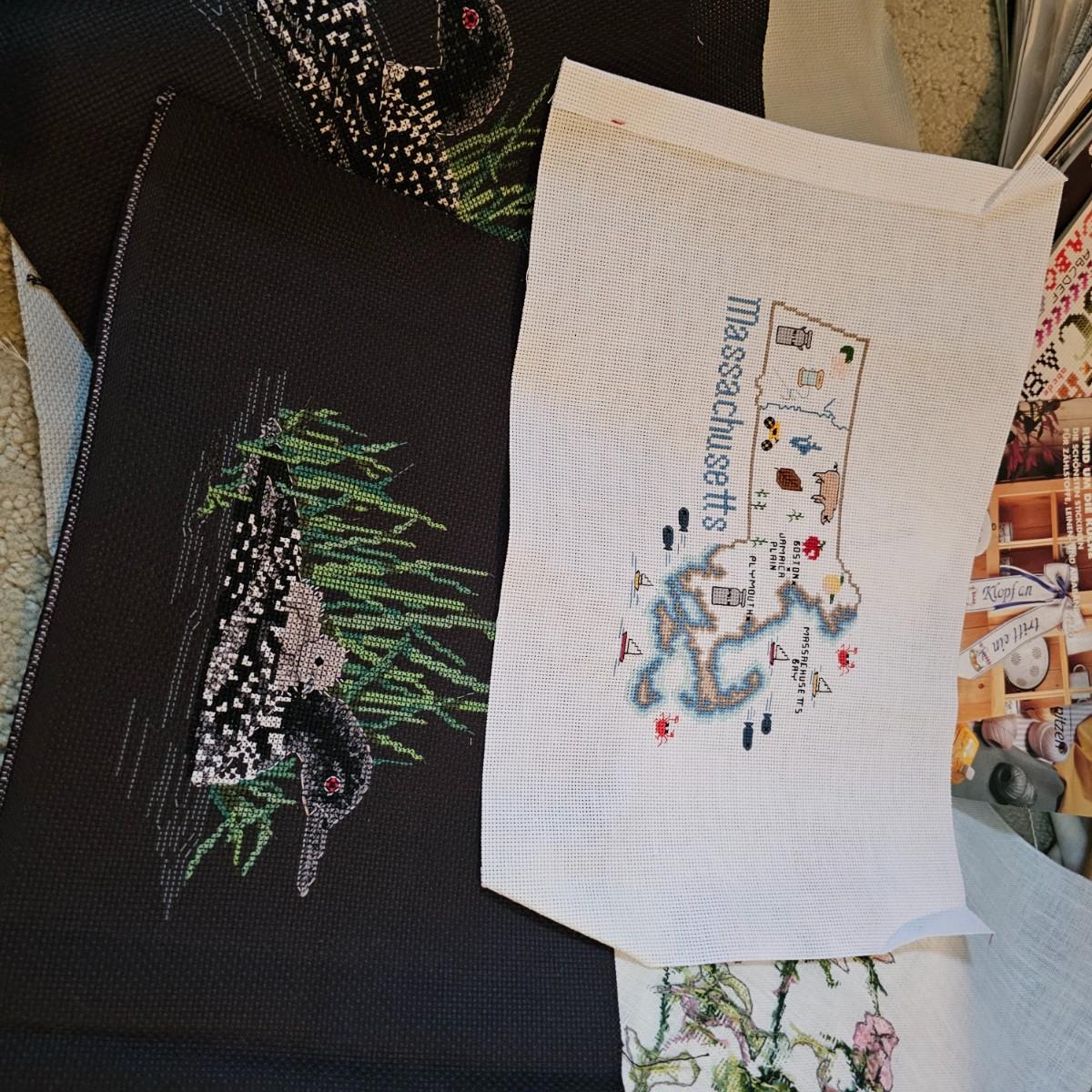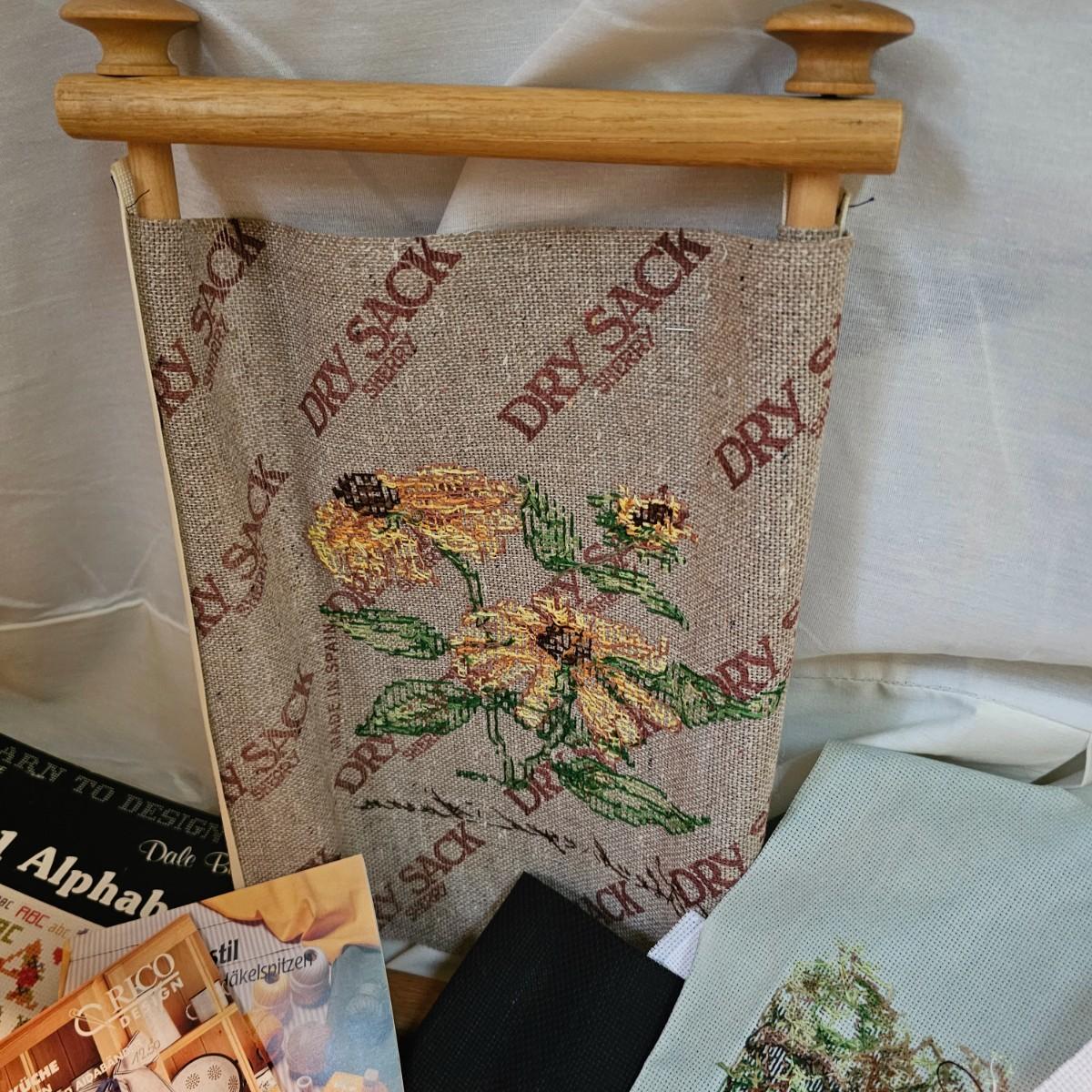 Supplies, fabric, floss, needles, patterns. Everything you need to work on embroidery and needlepoint crafts. Stretchers, yarn, transfer paper, etc. Many gorgeous started or completed projects are included. See photos for details. Local pickup only.