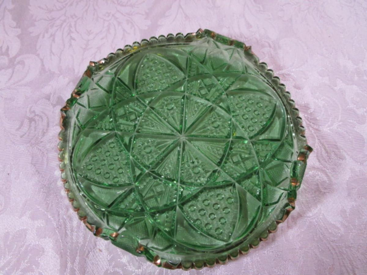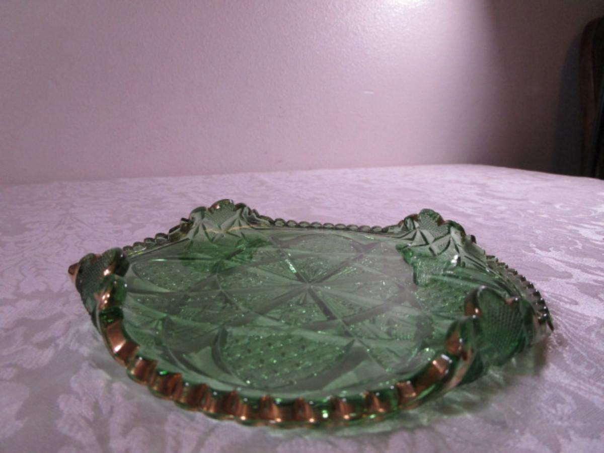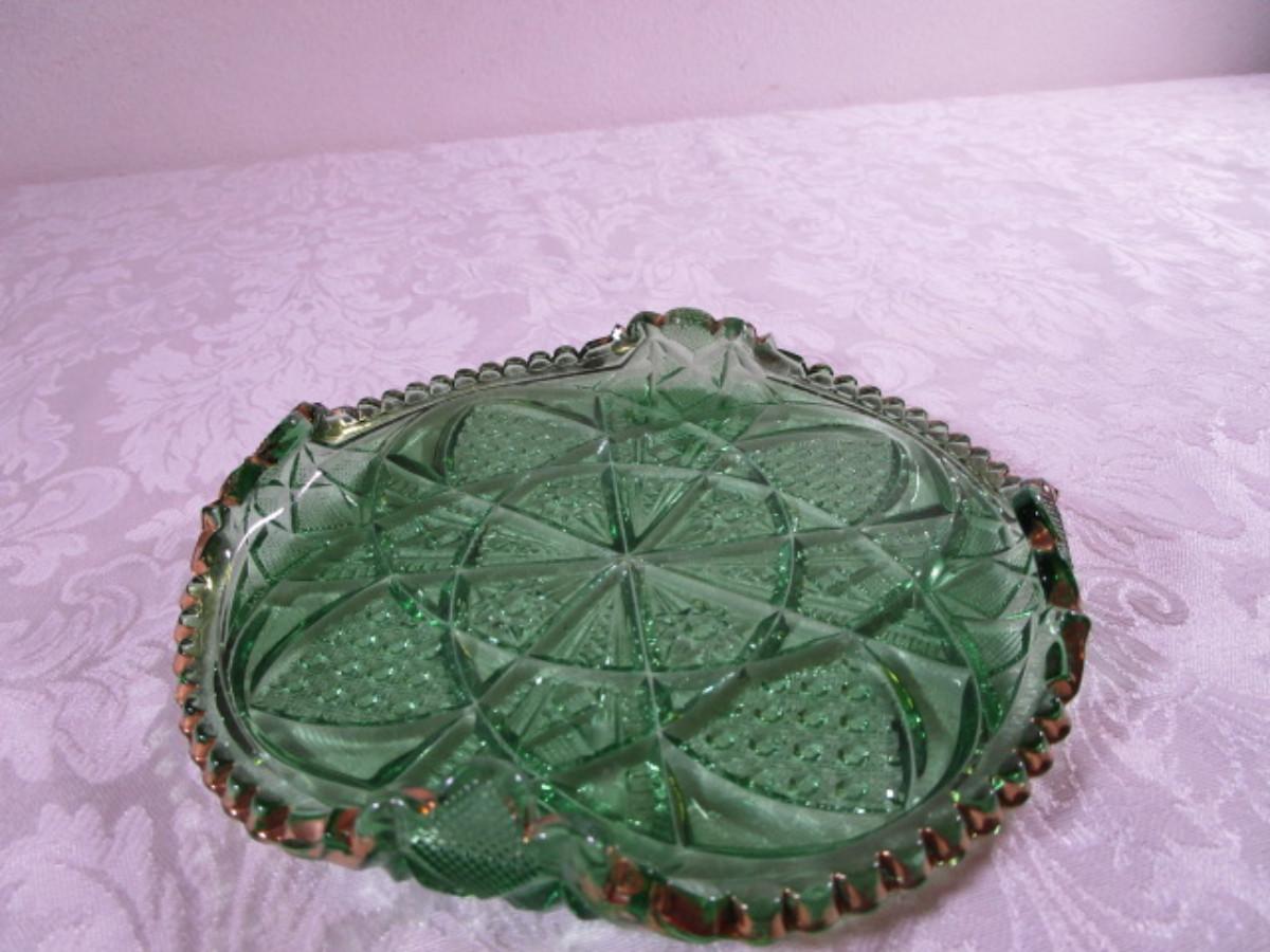 Emeral Green pressed glass relish dish