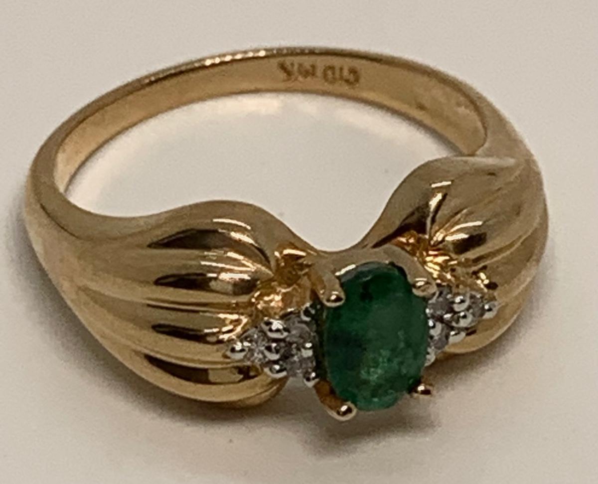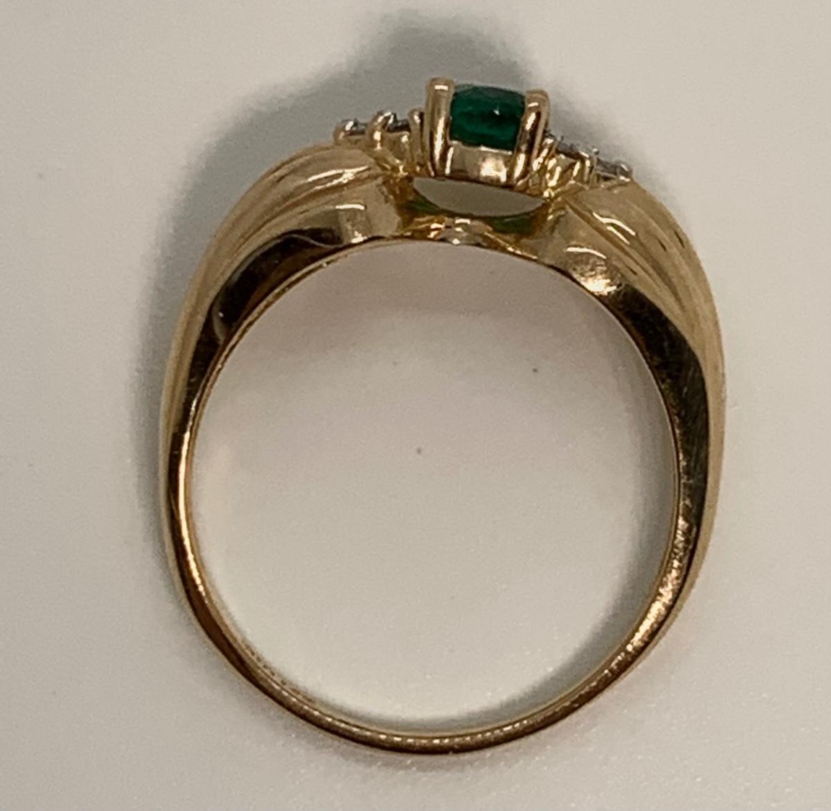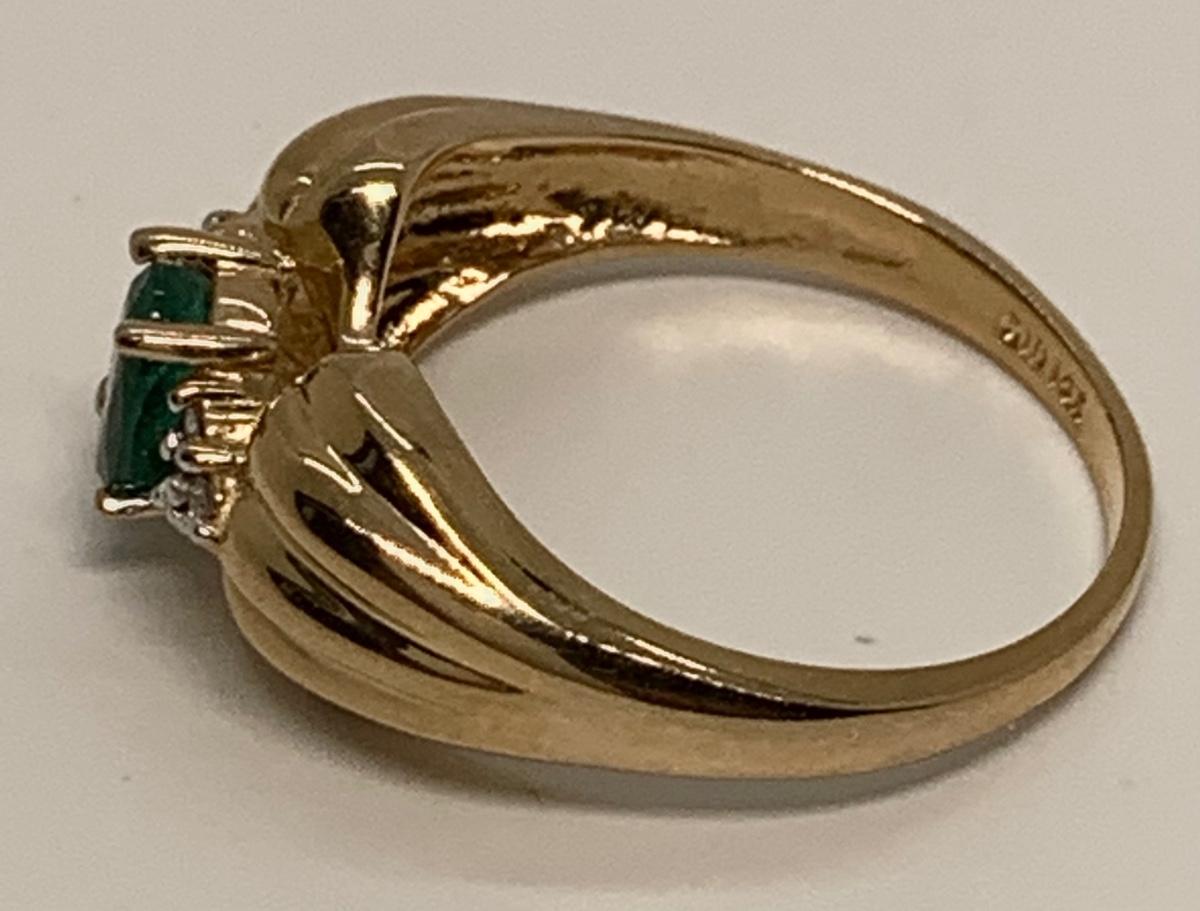 Tw 3.9g 14k CID Yellow Gold Emerald & Diamond chip ring Sz7