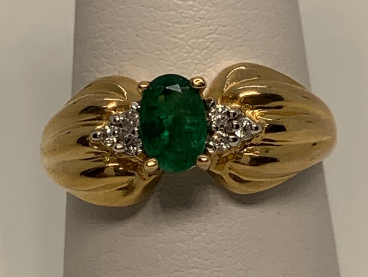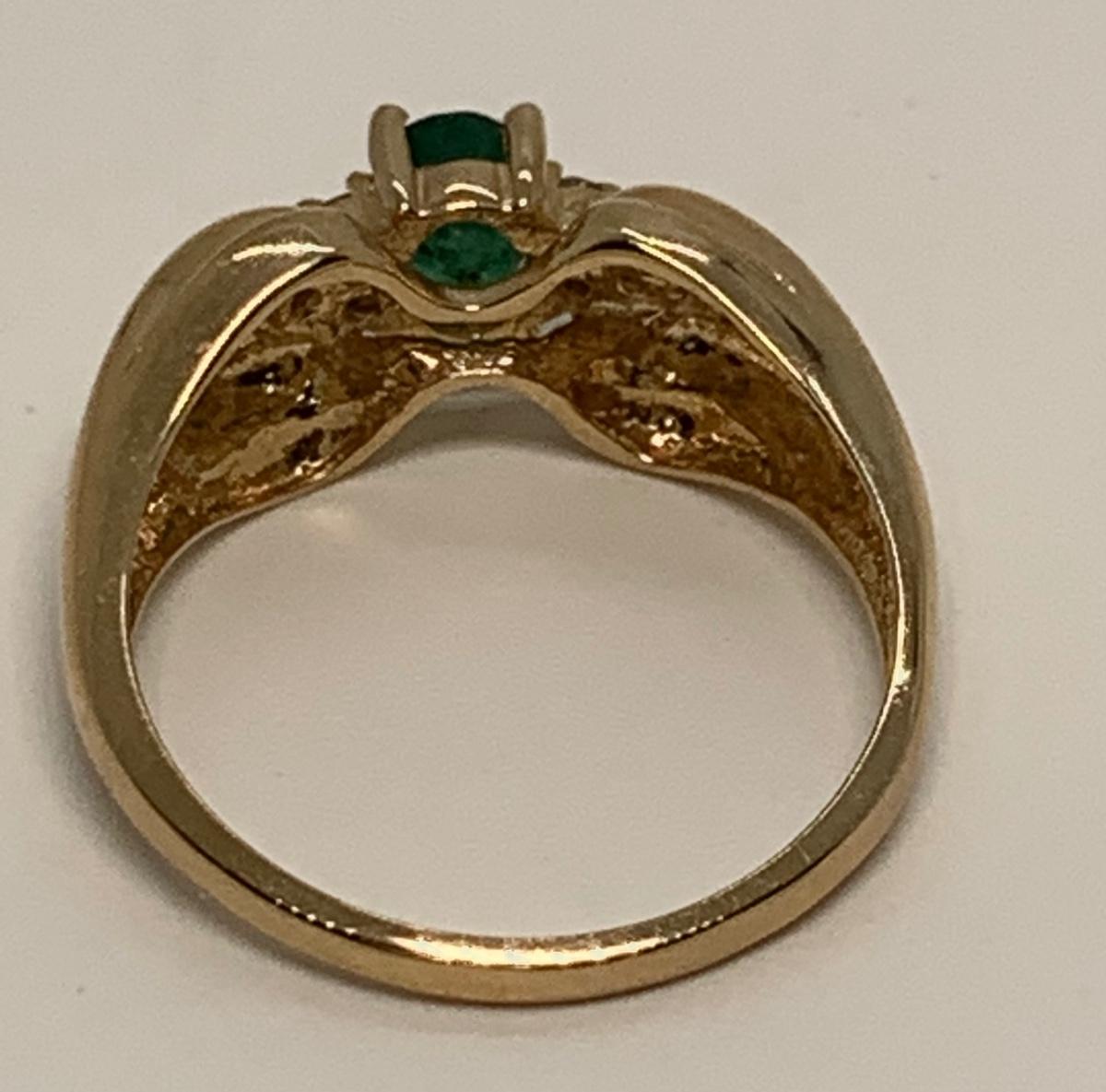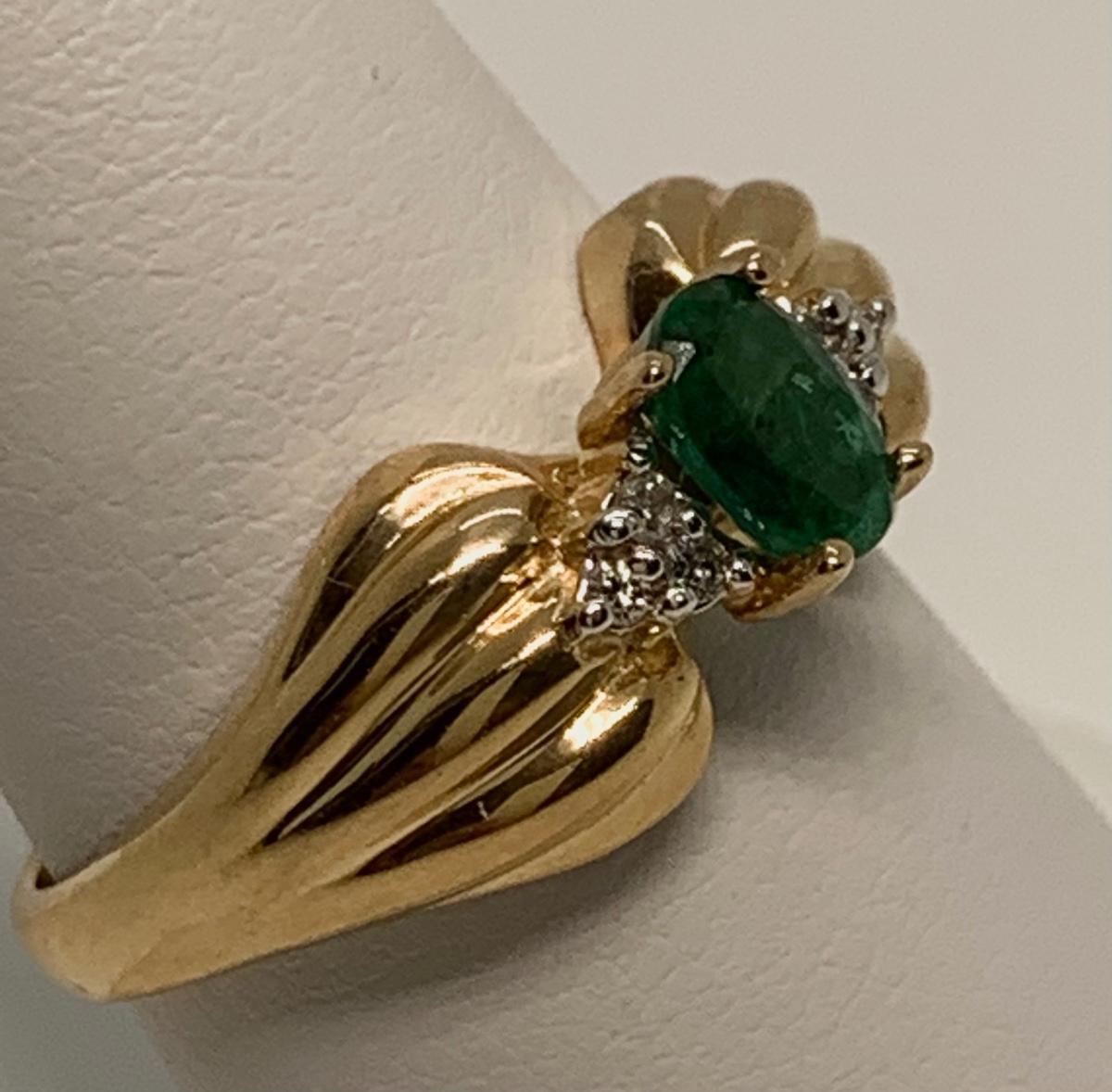 Tw 3.9g 14k CID Yellow Gold Emerald & Diamond chip ring Sz7