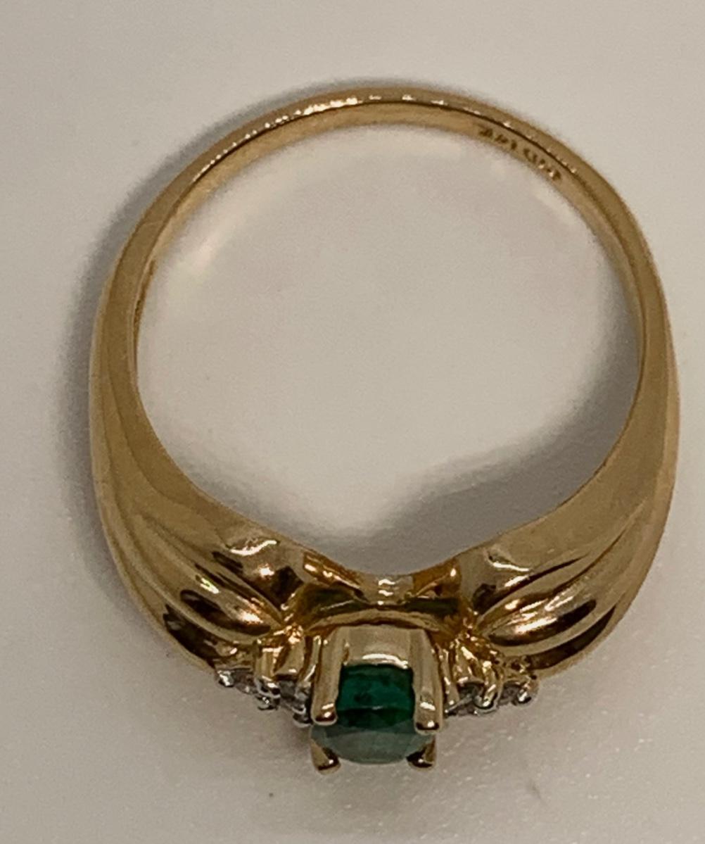 Tw 3.9g 14k CID Yellow Gold Emerald & Diamond chip ring  Sz7