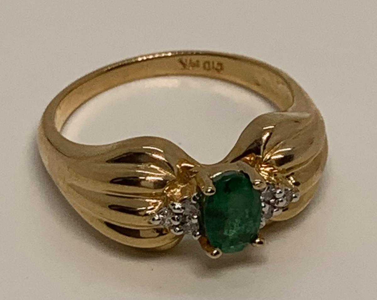 Emerald & Diamond chip 14 K CID