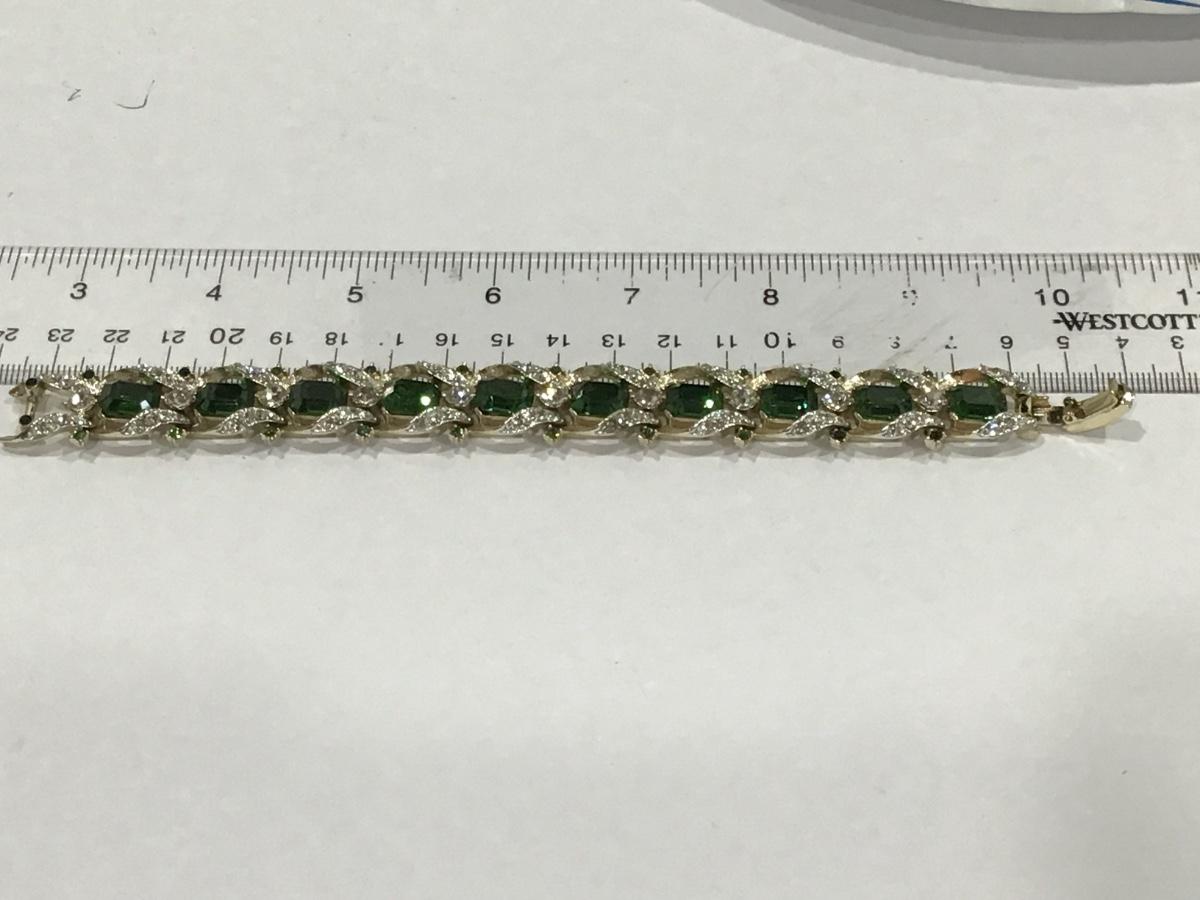 Emerald Colored Stones Faux Diamonds in Gold and Silver Tone Setting