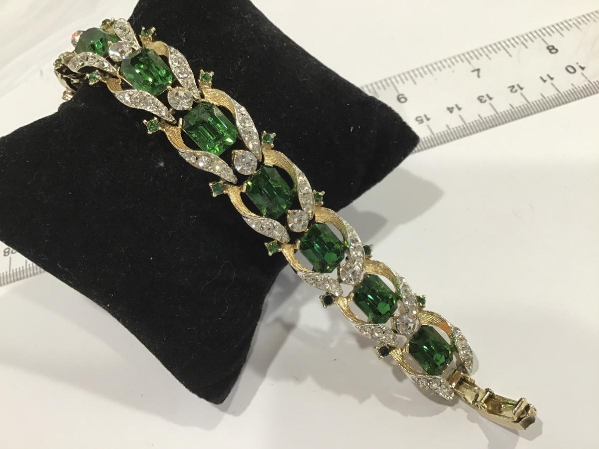 Emerald Colored Stones Faux Diamonds in Gold and Silver Tone Setting