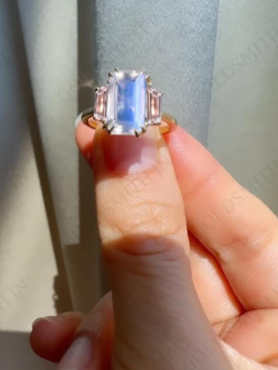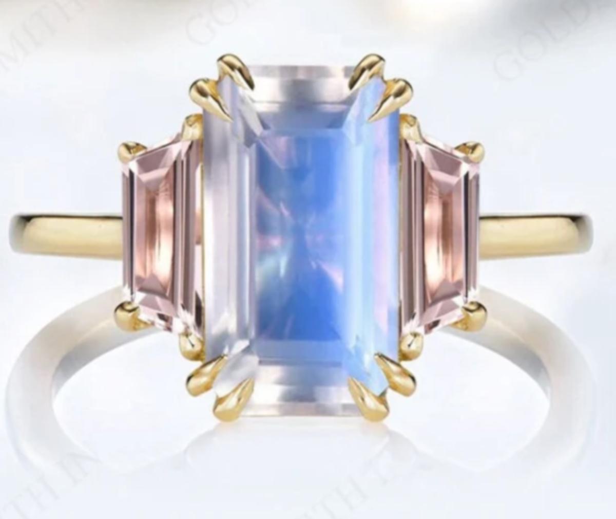 Emerald Cut Moonstone & Morganite Ring