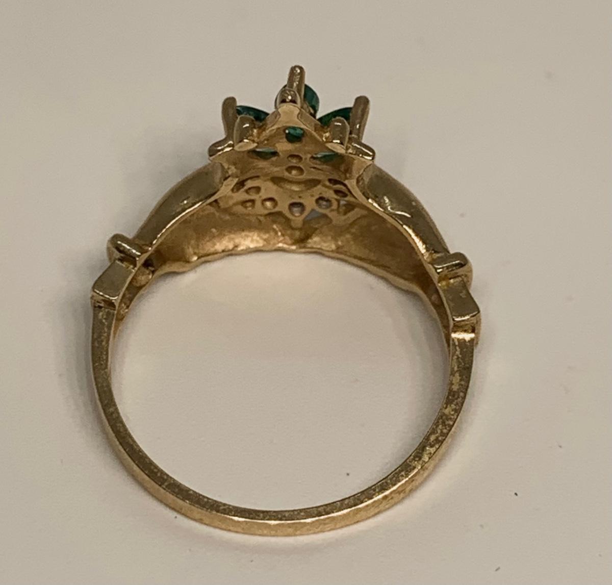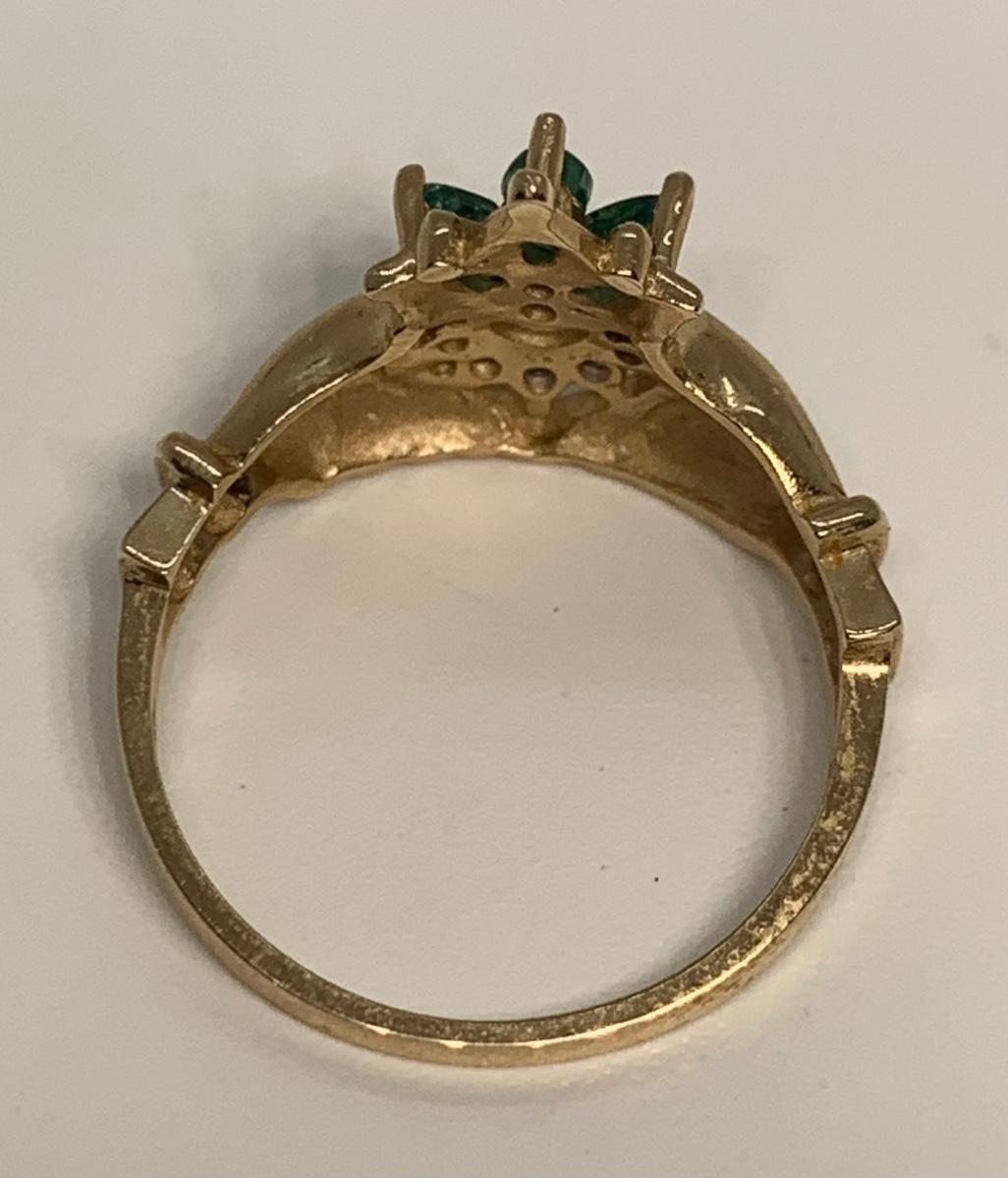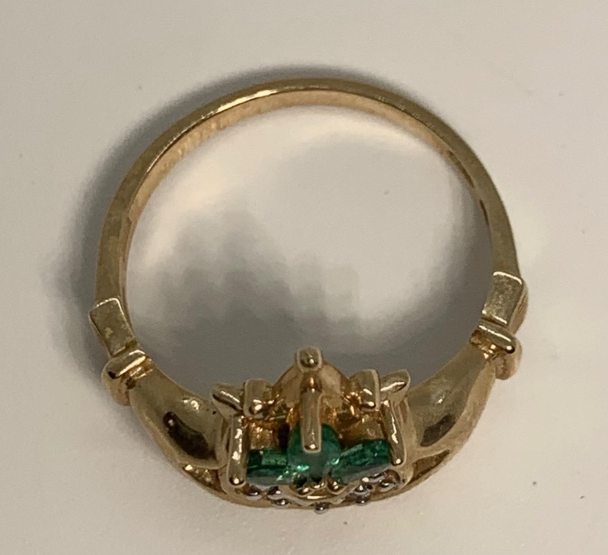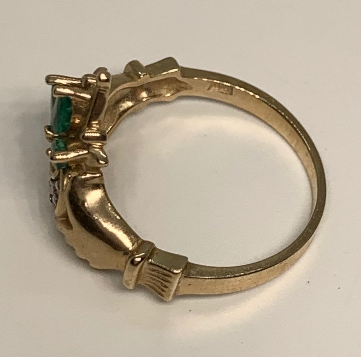 Tw 3.3g 14k Yellow Gold Emerald & Diamond Irish Claddagh Ring sz6.5
