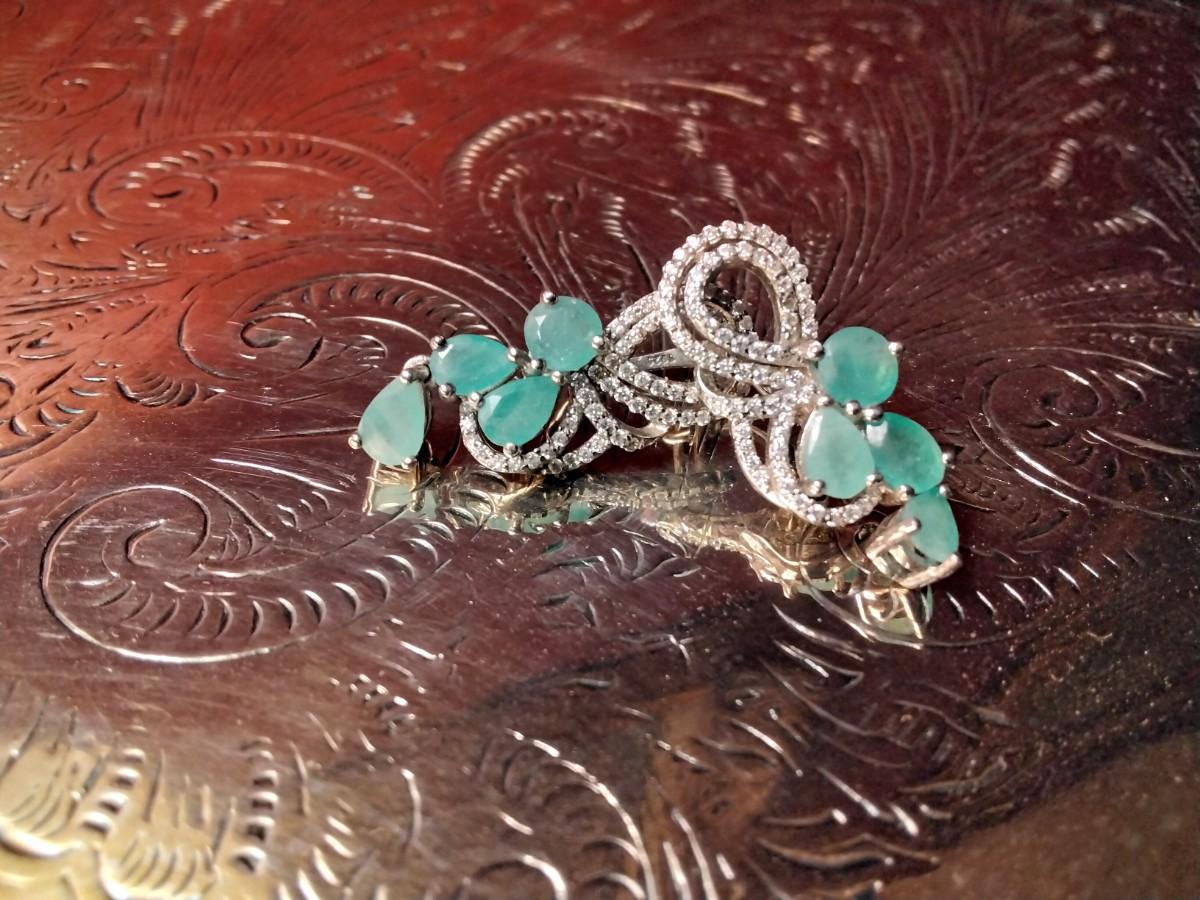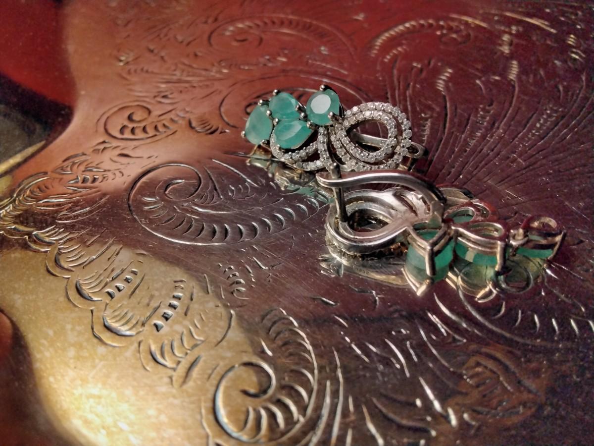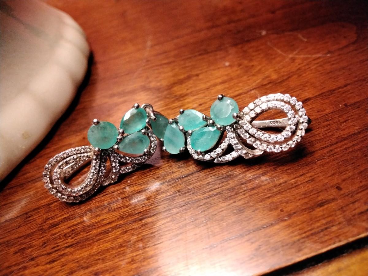 Beautiful classy, new never worn, Emerald and white Sapphire earrings
