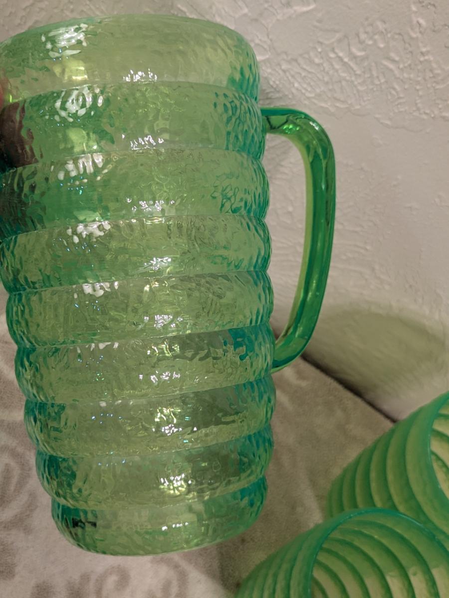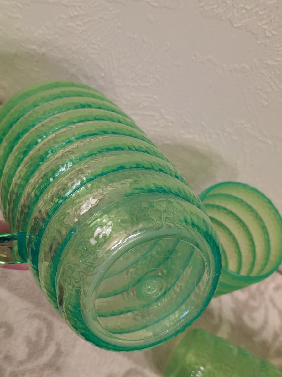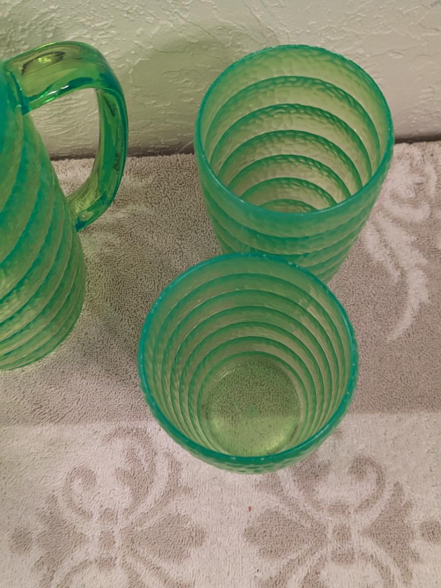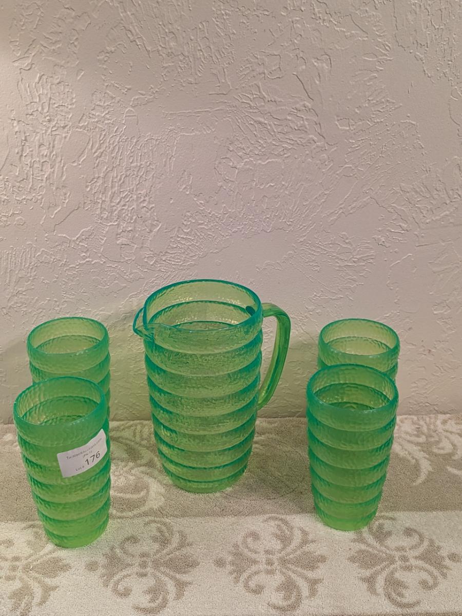 Emerald green acrylic or plastic pitcher and tumblers