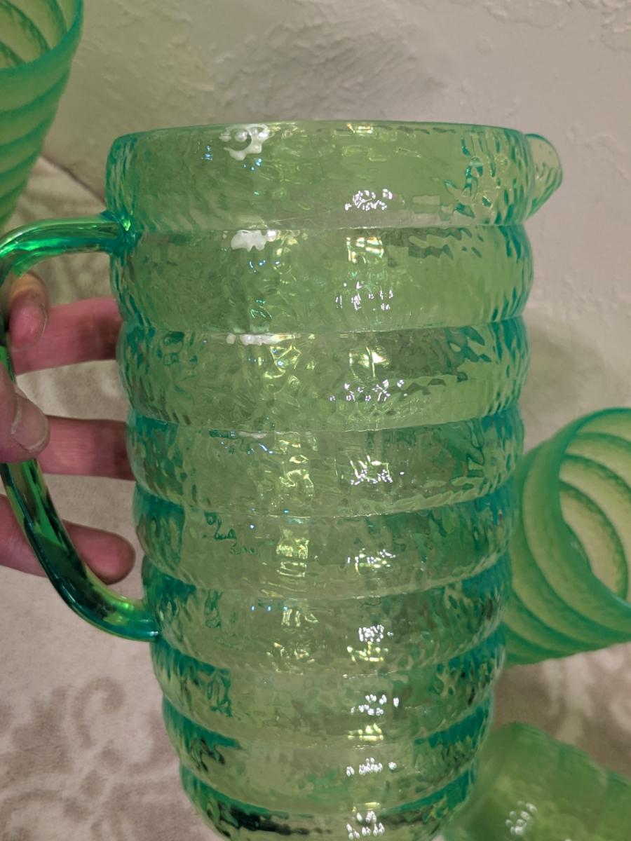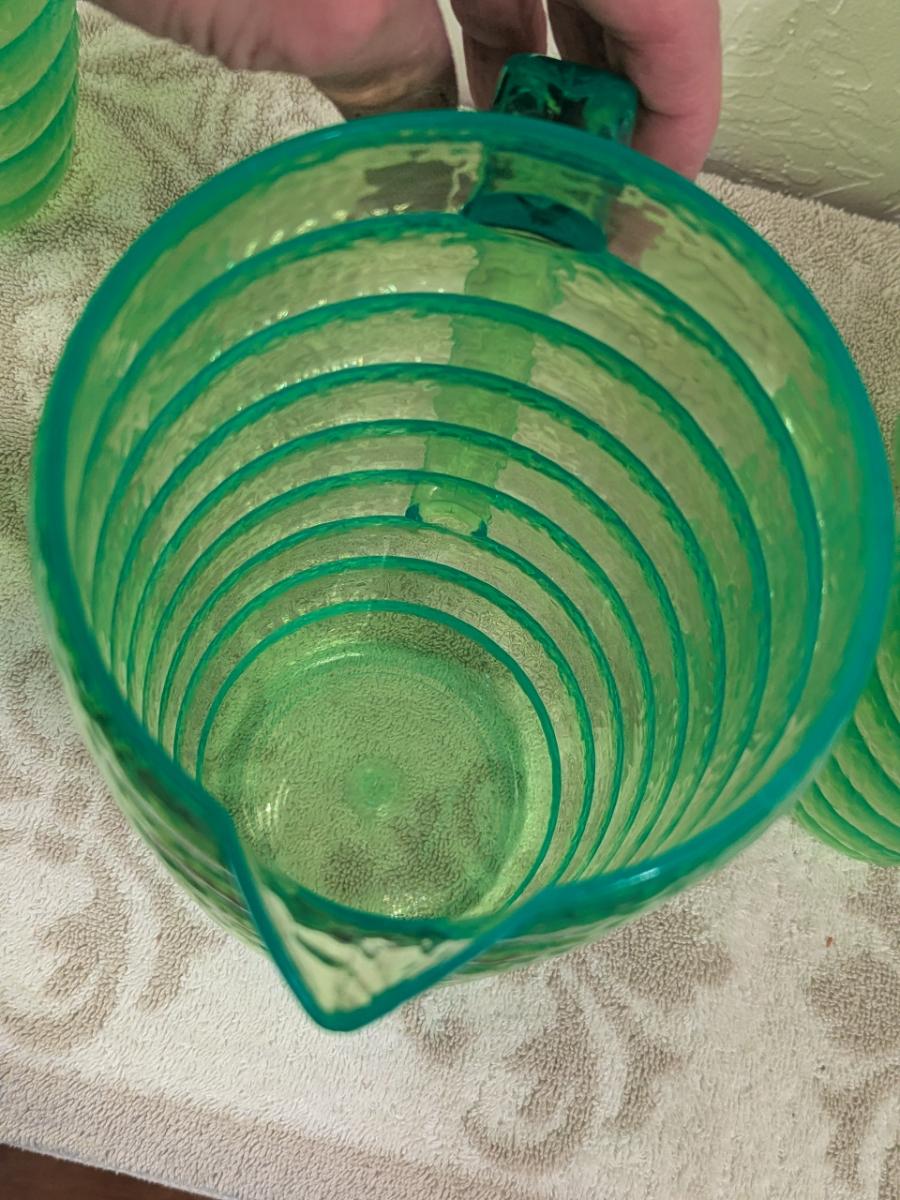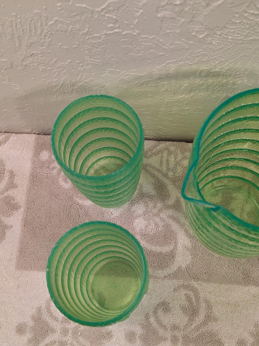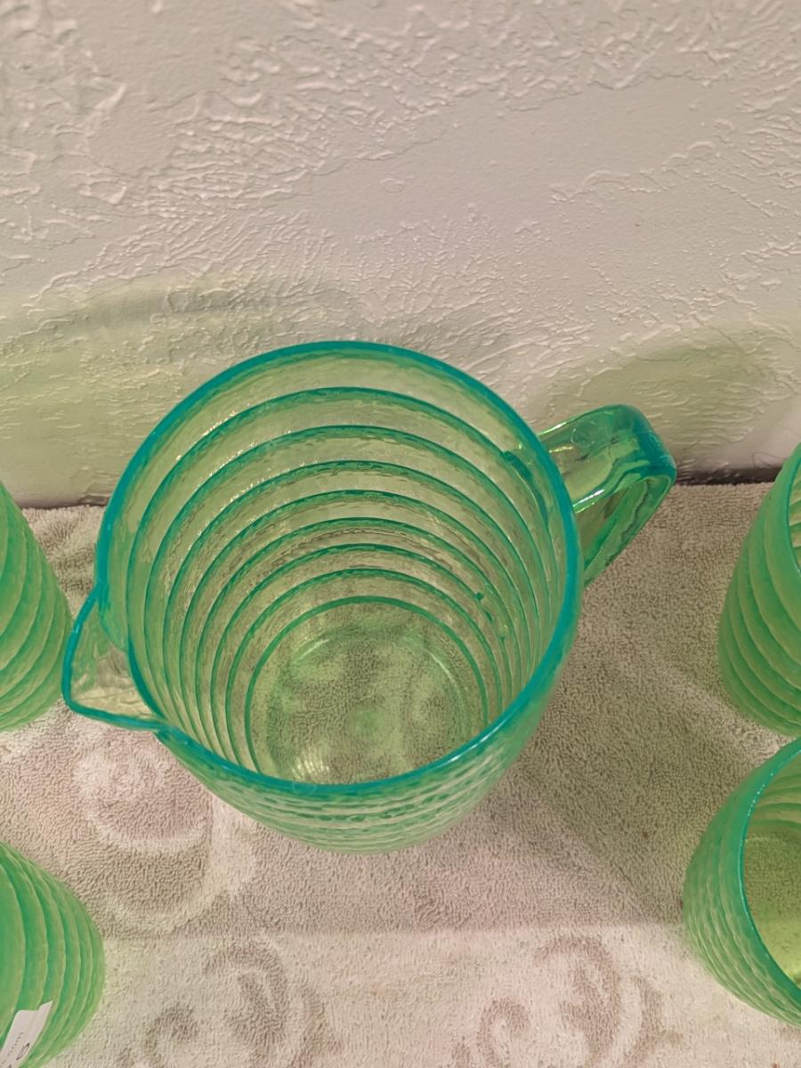 Emerald green acrylic or plastic pitcher and tumblers
