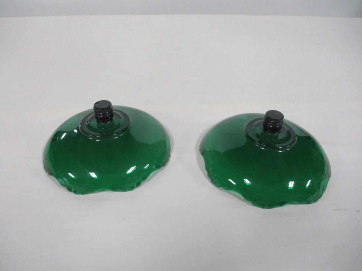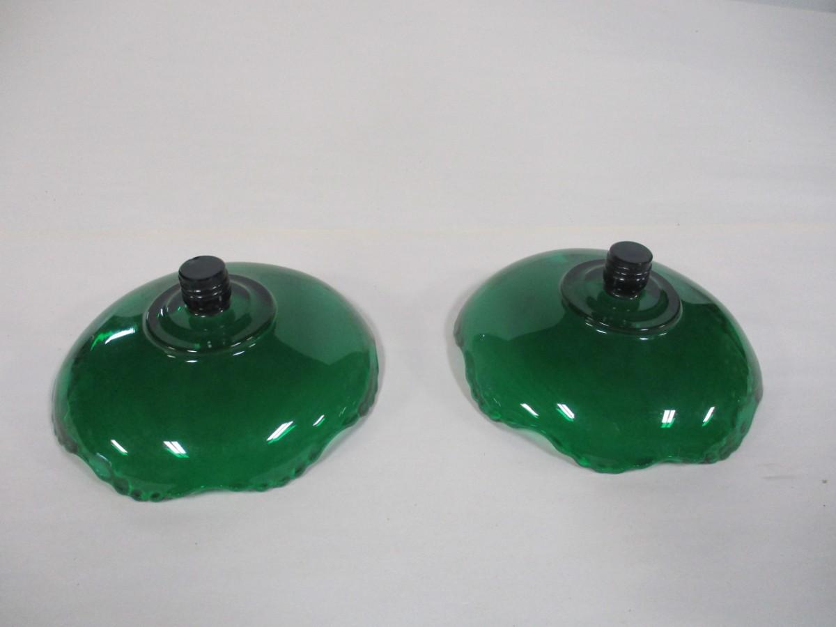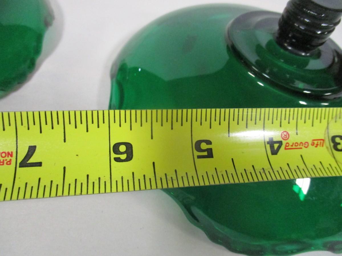 Emerald Green Glass Candle Holders Ruffle Rim Threaded Pedestal