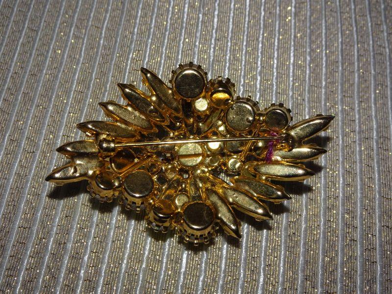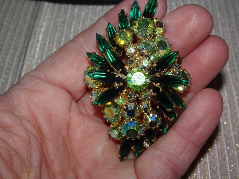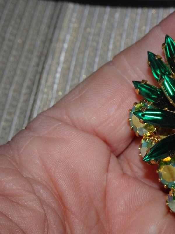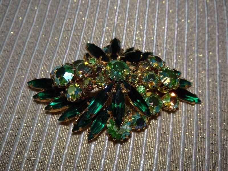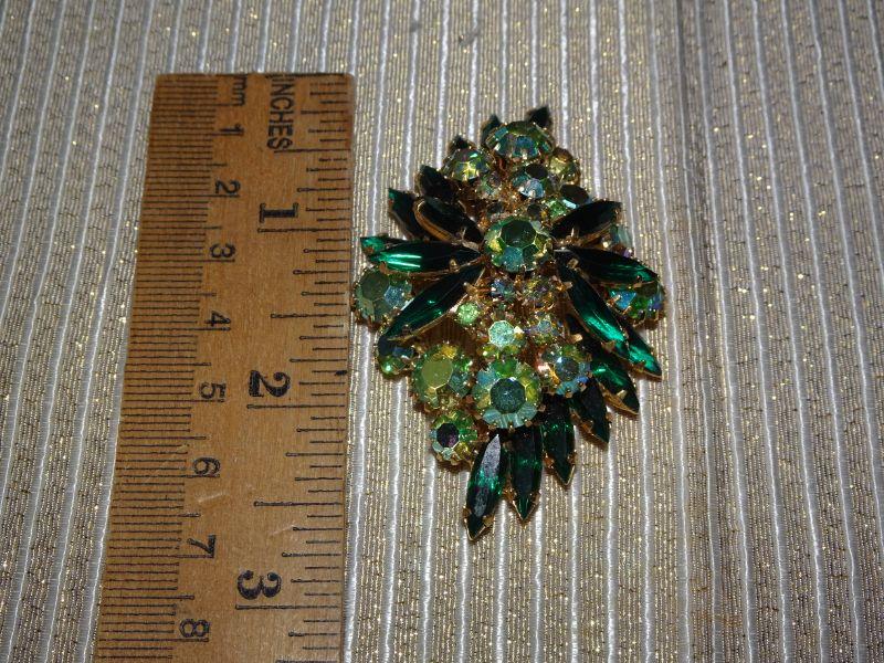 Emerald Green Gold Tone Rhinestone Cluster Brooch