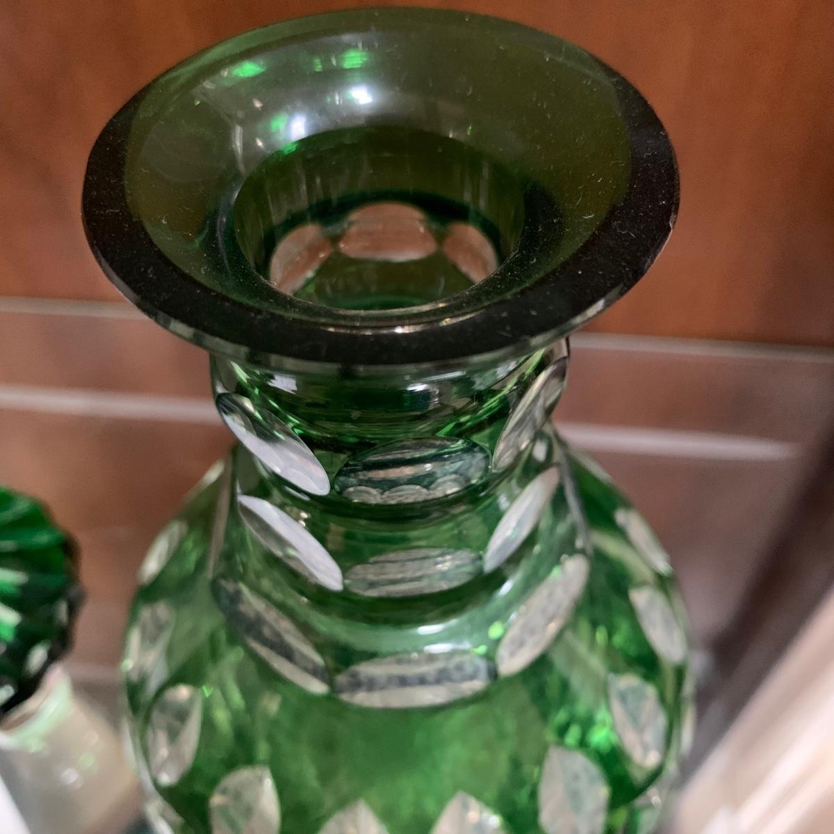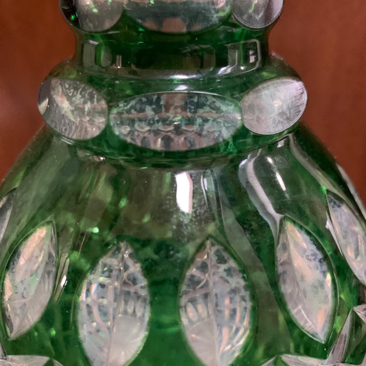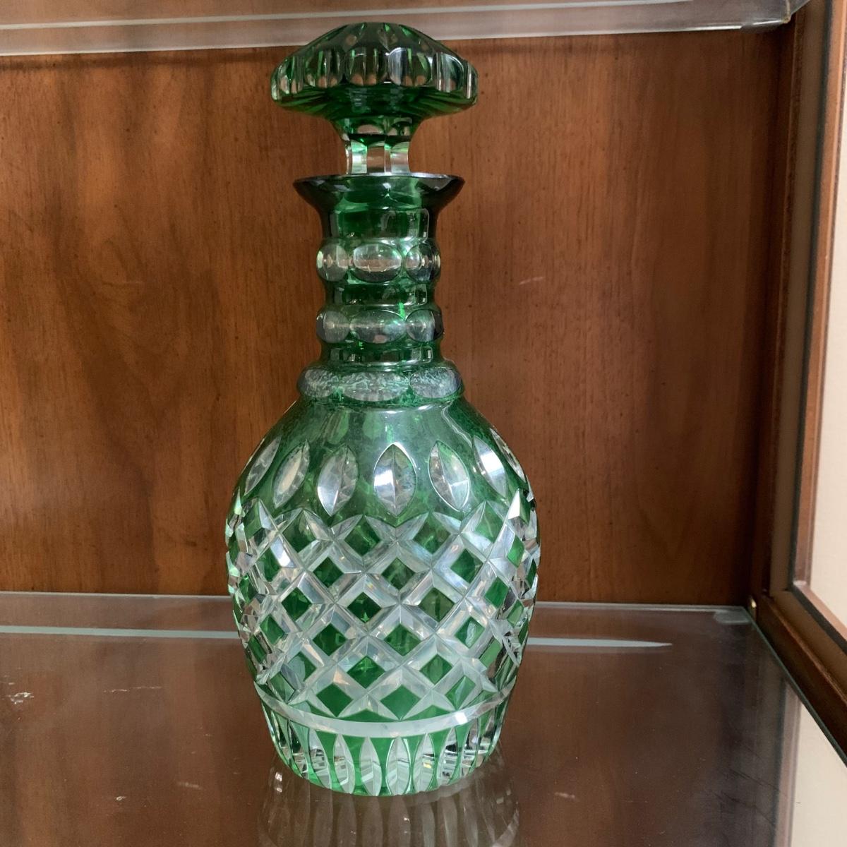 Emerald Green-Hued Cut Glass Decanter & More (LR-HS)