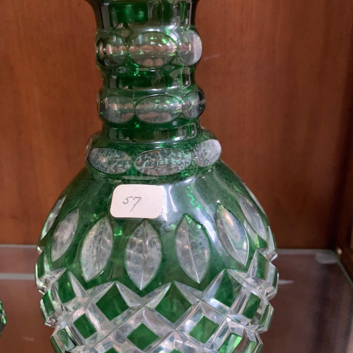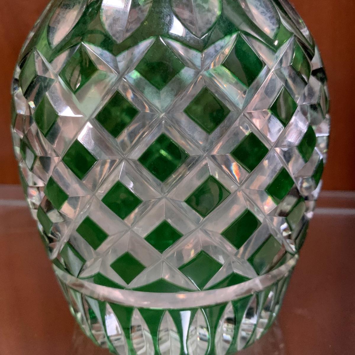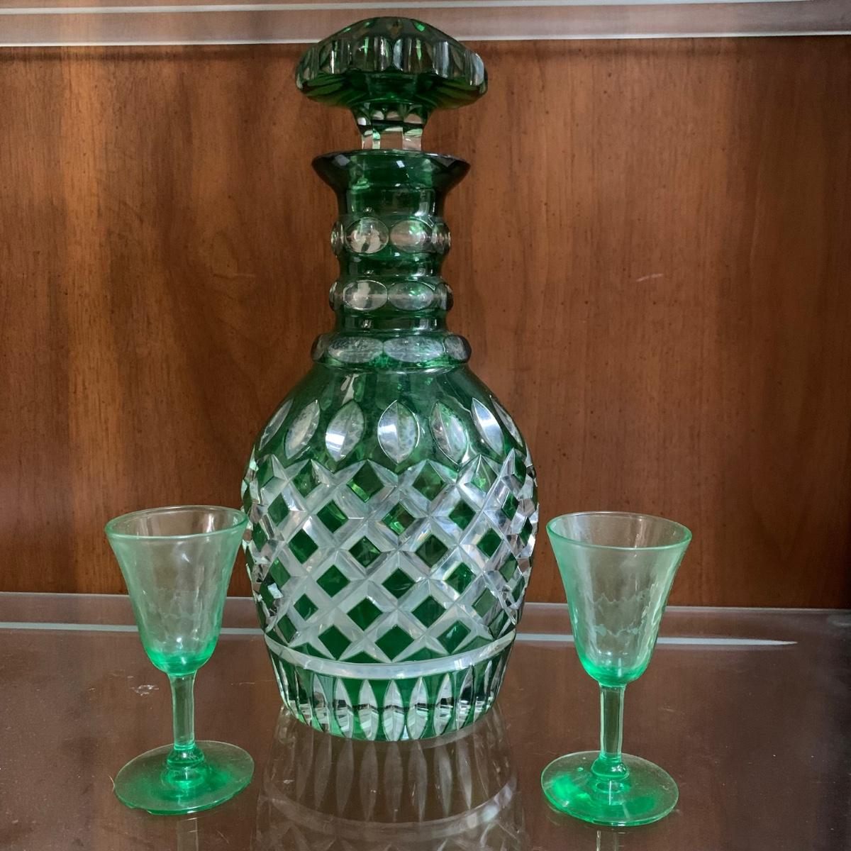 Emerald Green-Hued Cut Glass Decanter & More (LR-HS)