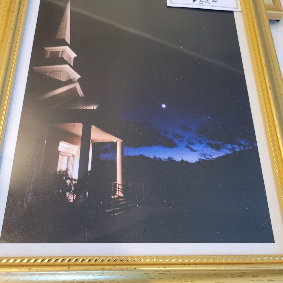Three pen signed photographs by Kathy Ozzard Chism that includes "Emergence", "Misty Mountain" and "Church and Moon". Each is in a matching plastic easel back frame with a gold finish and measures approximately 12 5' x 10"H. Shipping available. Shipping can be costly. We suggest contacting our preferred local shipping provider, Postage Express, with dimensions and getting an estimate before bidding: (828) 670-5501 or postageexpress@yahoo.com.